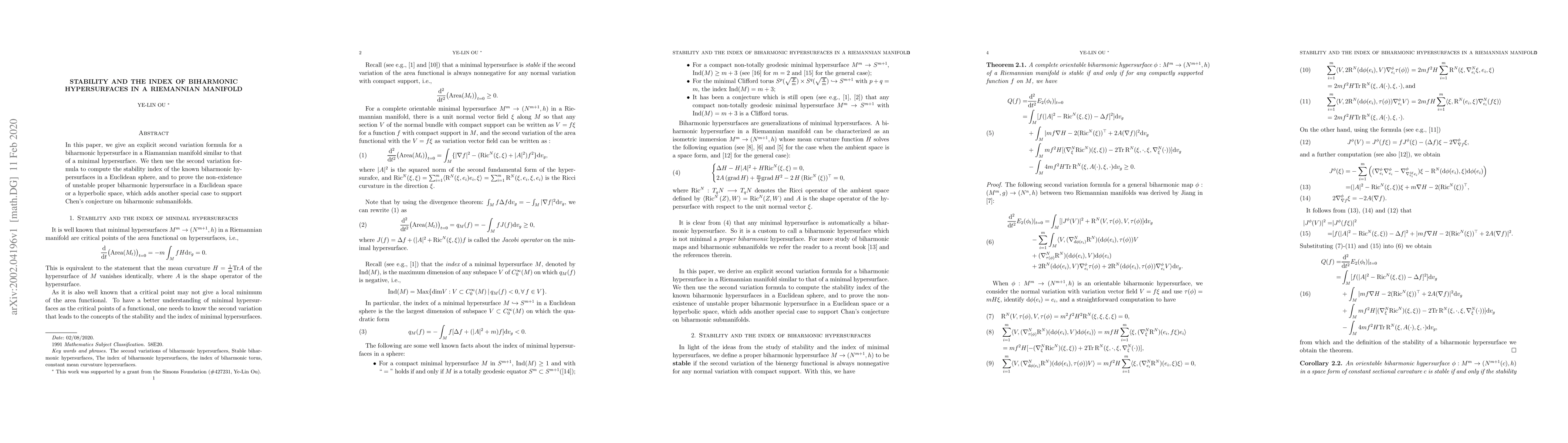 Researchers provide a formula for the stability index of biharmonic hypersurfaces in Riemannian manifolds, showing that certain surfaces are stable or unstable, supporting a conjecture about biharmonic submanifolds.