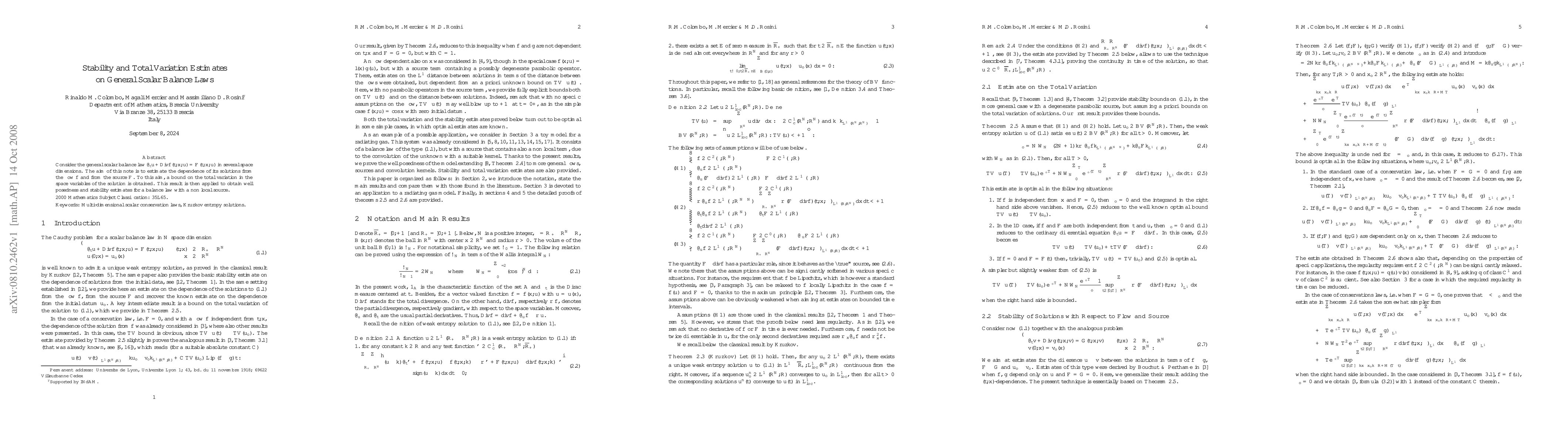 This paper investigates the stability and total variation estimates for general scalar balance laws, deriving bounds on the solution's total variation in space variables. The findings are applied to establish well-posedness and stability for a balance law with a non-local source term.
