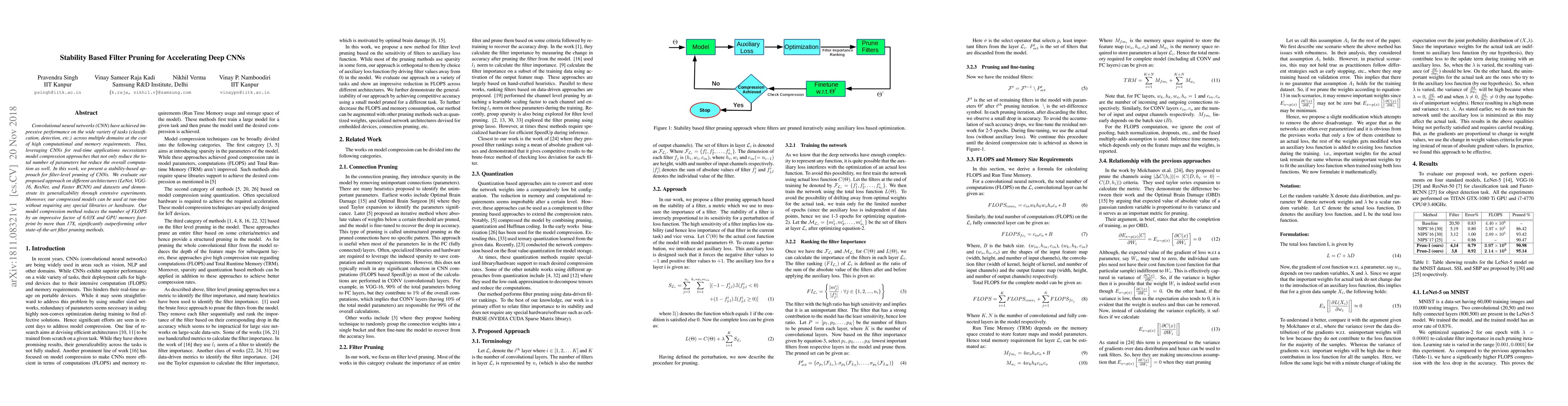 This paper proposes a stability-based filter-level pruning method for compressing convolutional neural networks (CNNs) to reduce computational load and memory usage. The approach is shown to outperform other methods, achieving a 6.03X reduction in FLOPS and a 17X reduction in GPU memory across various architectures and datasets.