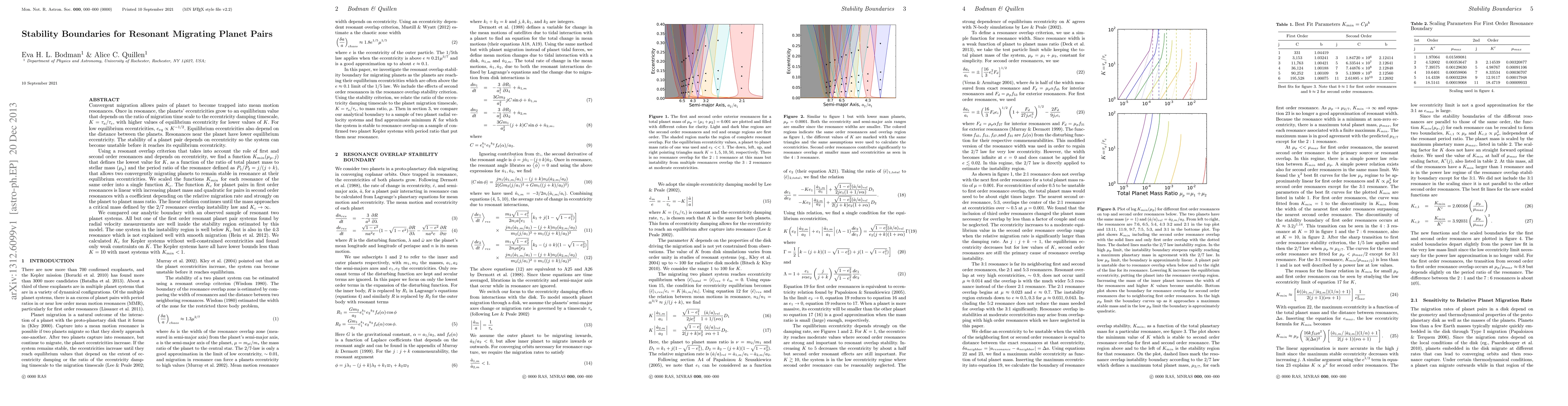 This paper investigates the stability boundaries for resonant migrating planet pairs, deriving a function $K_{min}$ that defines the minimum value of the ratio of migration time scale to eccentricity damping timescale for stability in mean motion resonances. The study finds that stability depends on planet mass and resonance order, with linear and quadratic relations for first and second order resonances respectively, and confirms the model's predictions against observed resonant planet systems.