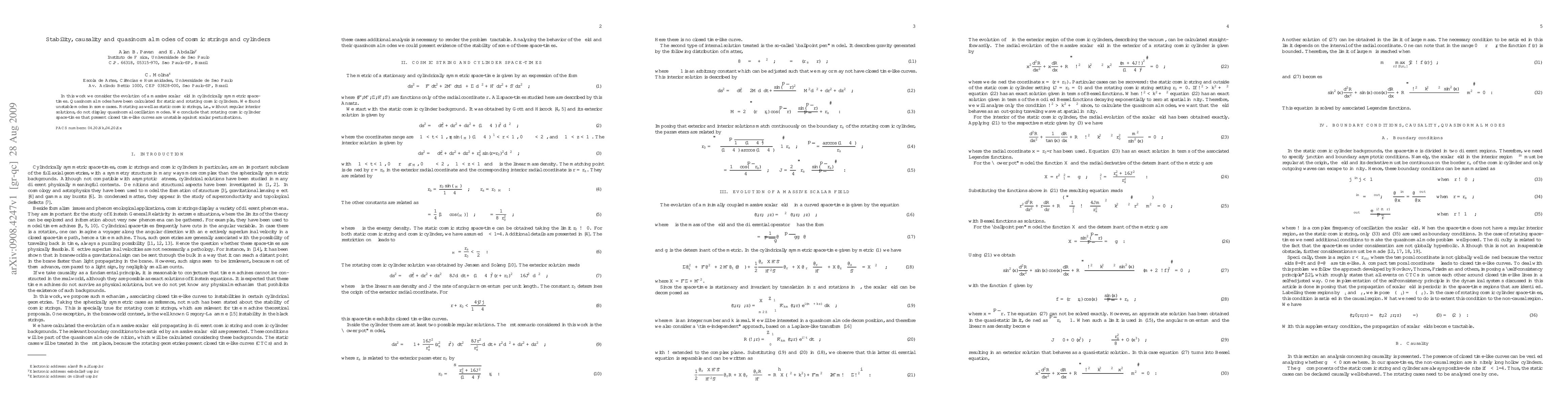 Researchers studied cosmic strings and cylinders for stability and quasinormal modes in a massive scalar field, finding unstable modes in some cases and concluding that rotating space-times with closed time-like curves are unstable to perturbations.
