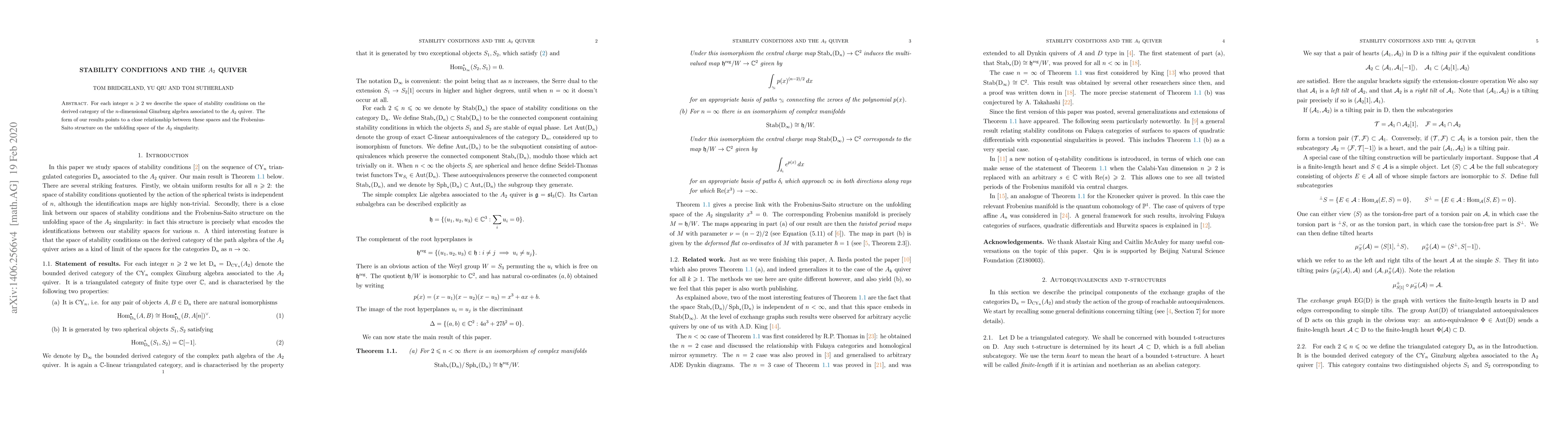 This paper explores the stability conditions on the derived category of the Ginzburg algebra for the $A_2$ quiver, revealing a strong connection to the Frobenius-Saito structure on the unfolding space of the $A_2$ singularity. The findings suggest a deep link between these stability conditions and the singularity's geometric properties.