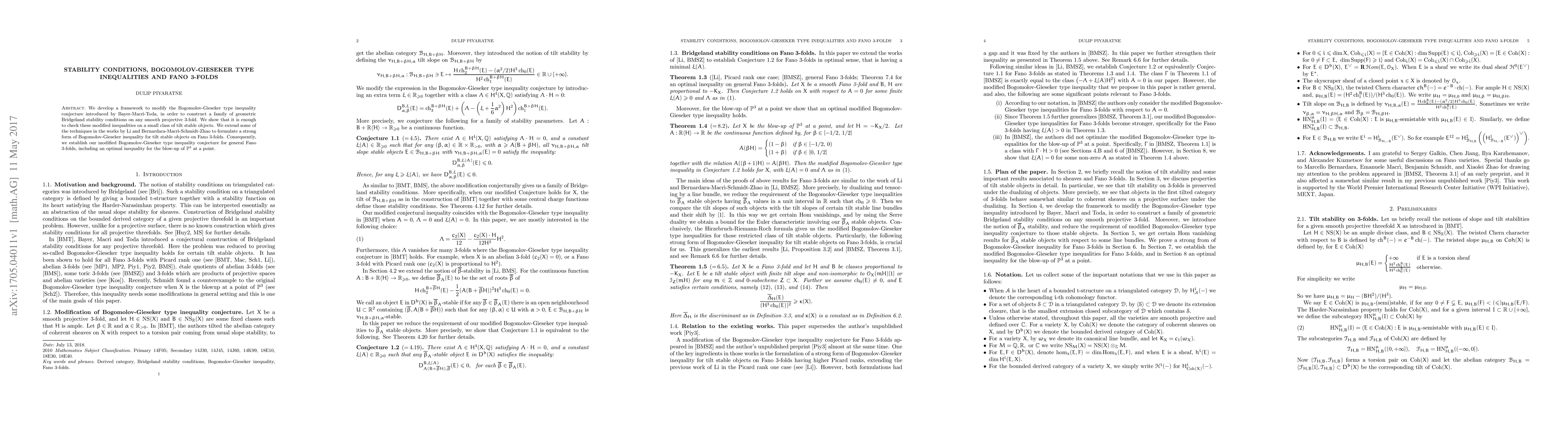 This paper develops a framework to modify the Bogomolov-Gieseker type inequality for smooth projective 3-folds, constructing a family of geometric Bridgeland stability conditions and establishing an optimal inequality for Fano 3-folds, including the blow-up of $P^3$ at a point.