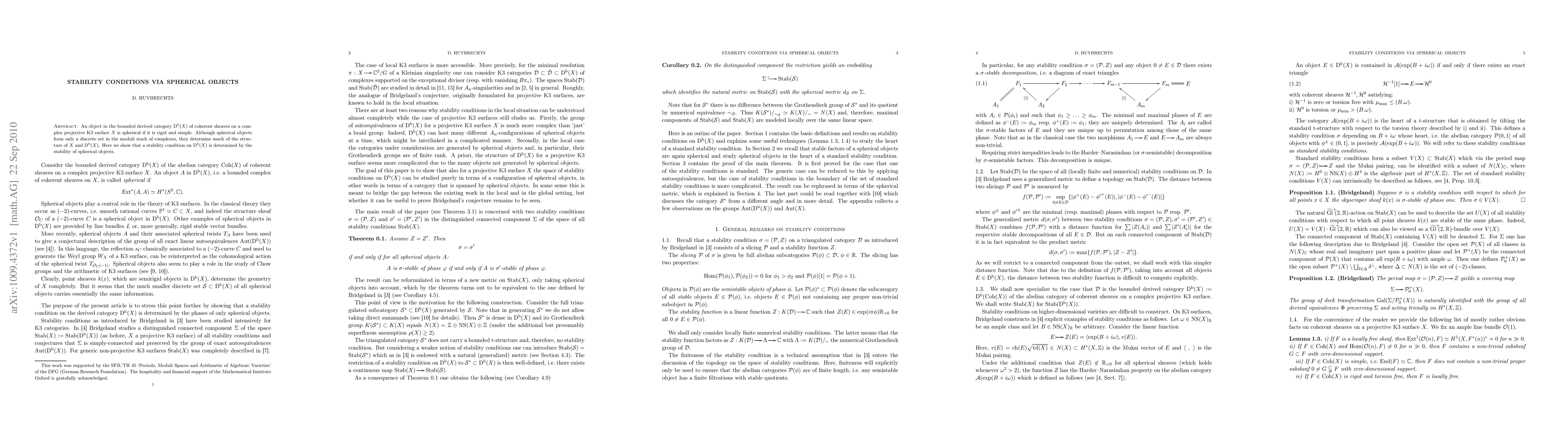 A research paper shows that stability conditions on a complex projective K3 surface X are determined by the stability of spherical objects in its derived category D^b(Coh(X)). Spherical objects play a key role in determining the structure of X and D^b(Coh(X)).