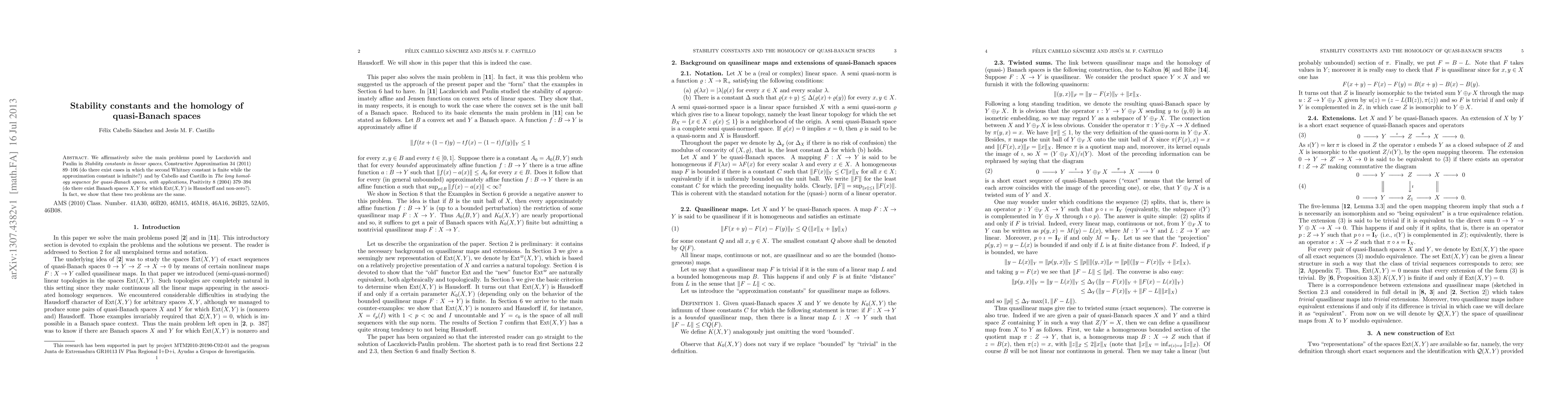 This paper resolves longstanding questions regarding the stability constants in quasi-Banach spaces, demonstrating that cases where the second Whitney constant is finite while the approximation constant is infinite do not exist. It also shows that the existence of Banach spaces with a non-zero Hausdorff $\Ext(X,Y)$ homology sequence is impossible.