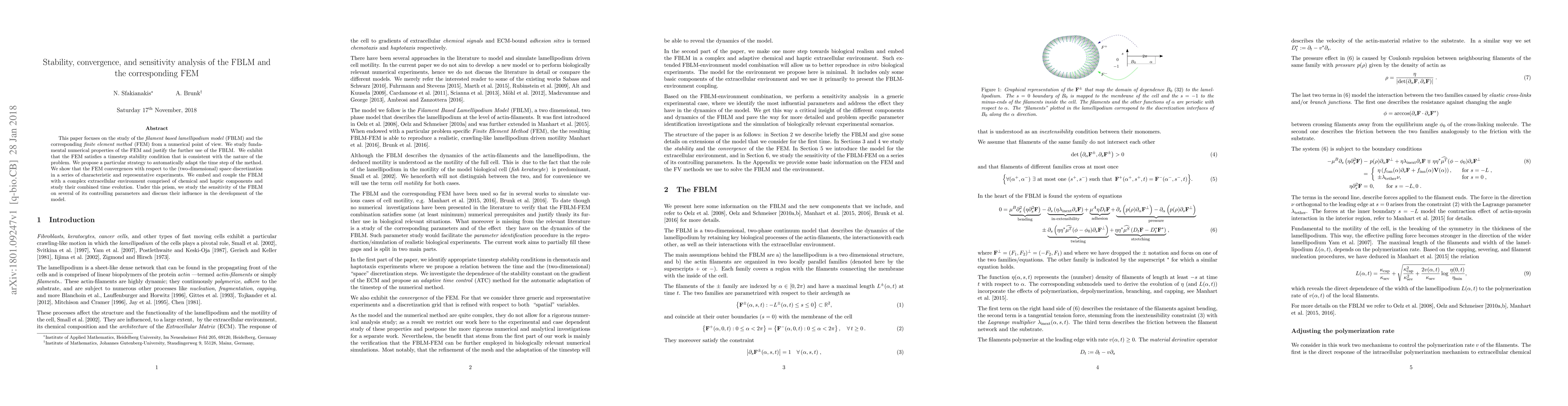 This paper investigates the numerical properties of the Filament Based Lamellipodium Model (FBLM) and its corresponding Finite Element Method (FEM), demonstrating stability and convergence. It also explores the model's sensitivity to various parameters and integrates it with a complex extracellular environment.