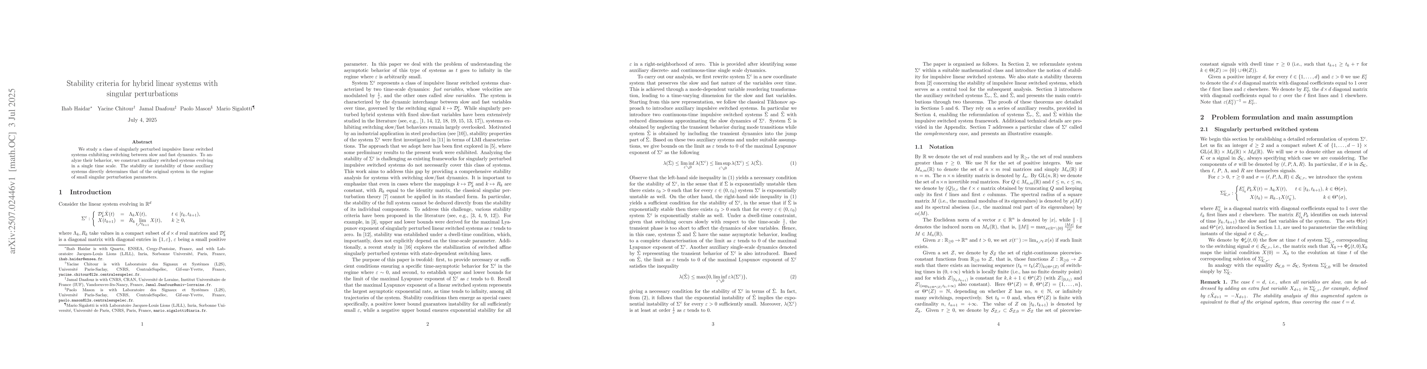 We study a class of singularly perturbed impulsive linear switched systems exhibiting switching between slow and fast dynamics. To analyze their behavior, we construct auxiliary switched systems evolving in a single time scale. The stability or instability of these auxiliary systems directly determines that of the original system in the regime of small singular perturbation parameters.