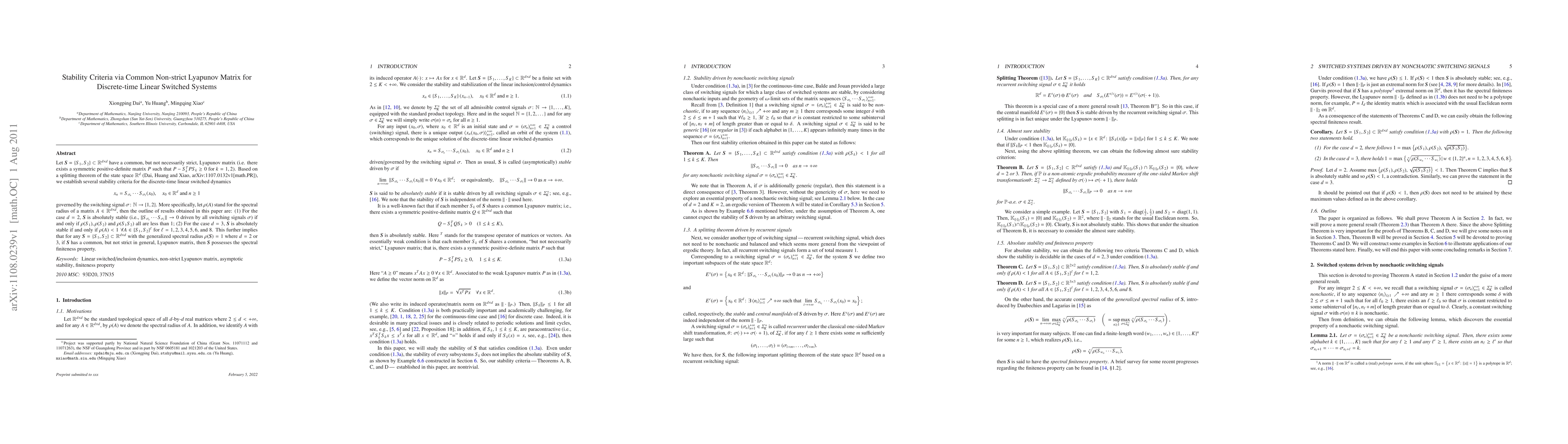 This paper investigates the stability criteria for discrete-time linear switched systems using a common non-strict Lyapunov matrix, providing a method to analyze the system's stability under switching conditions.