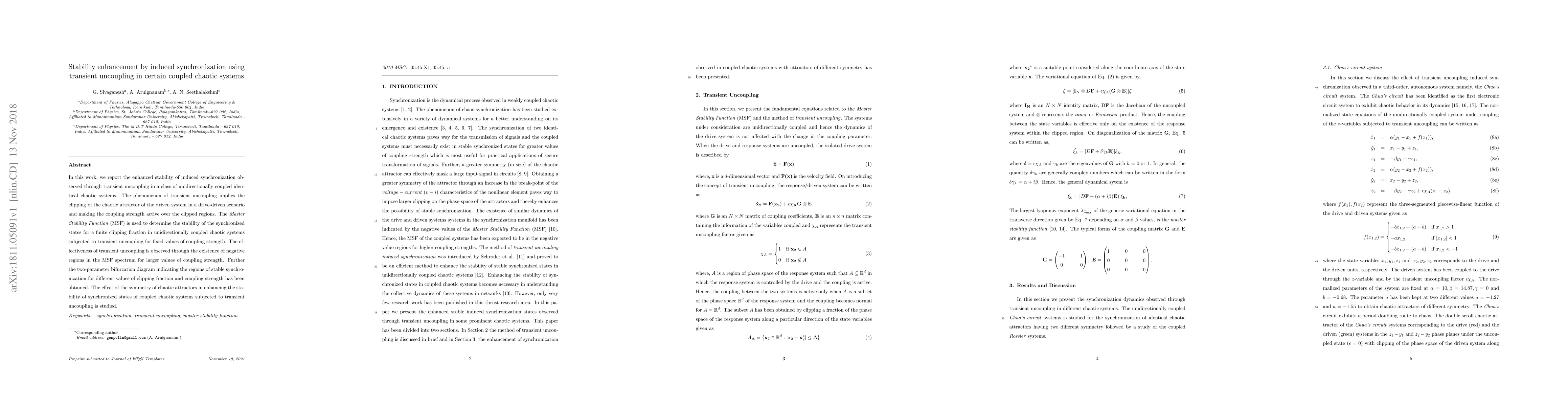 This paper investigates the enhanced stability of synchronization in unidirectionally coupled chaotic systems via transient uncoupling, demonstrating that clipping the chaotic attractor of the driven system can lead to stable synchronized states. The Master Stability Function is used to analyze stability, revealing negative regions indicating enhanced stability for larger coupling strengths.