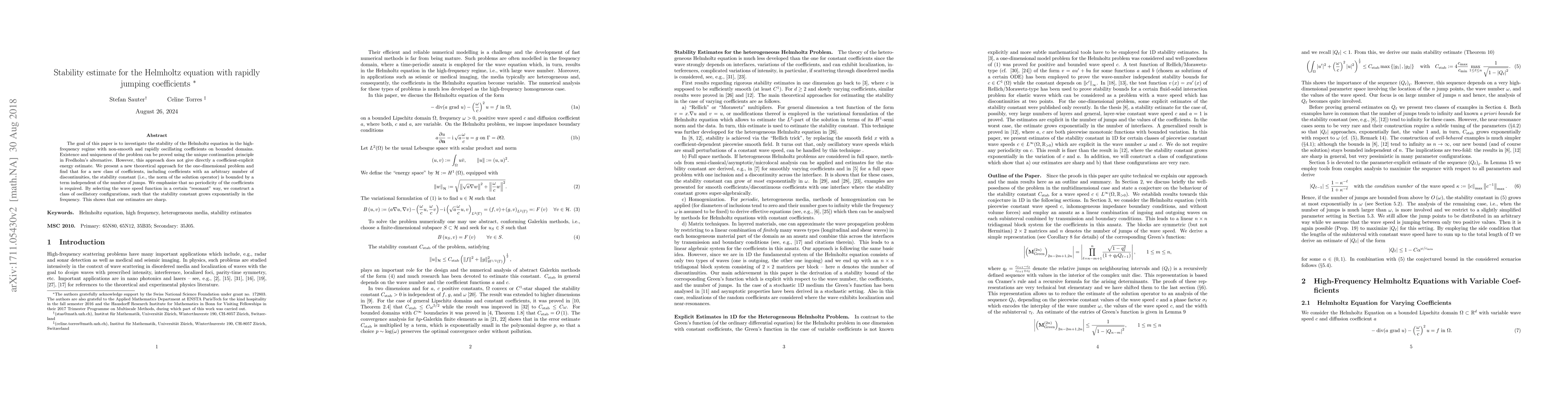 This paper investigates the stability of the Helmholtz equation in high-frequency scenarios with rapidly oscillating, non-smooth coefficients. It introduces a new theoretical approach that provides a coefficient-explicit energy estimate, showing that the stability constant remains bounded regardless of the number of discontinuities in the coefficients.