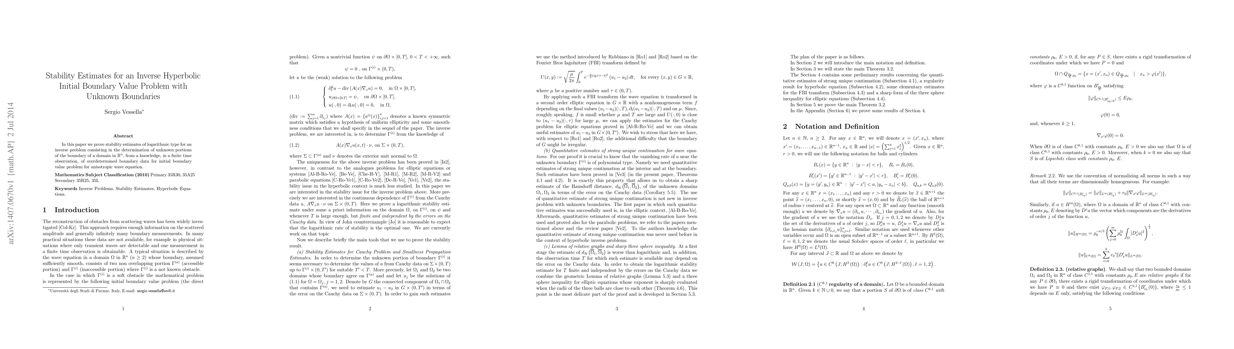 In this paper we prove stability estimates of logarithmic type for an inverse problem consisting in the determination of unknown portions of the boundary of a domain in $\mathbb{R}^n$, from a knowledge, in a finite time observation, of overdetermined boundary data for initial boundary value problem for anisotropic wave equation.