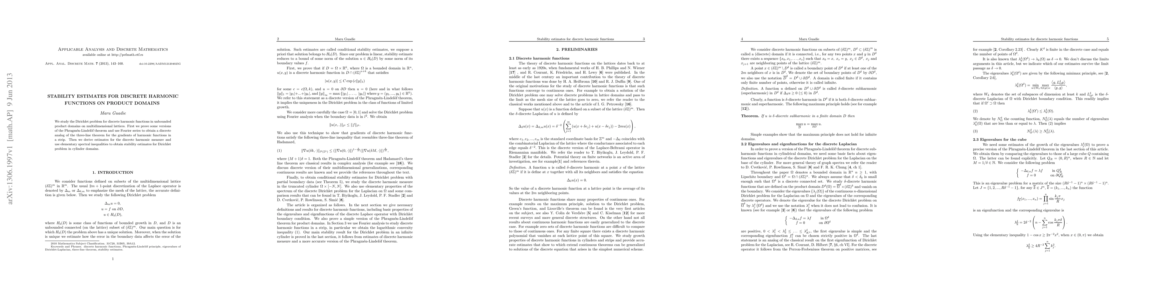 This paper investigates the Dirichlet problem for discrete harmonic functions in unbounded product domains on multidimensional lattices, deriving stability estimates using Fourier series and spectral inequalities to establish bounds on the gradients and harmonic measure.