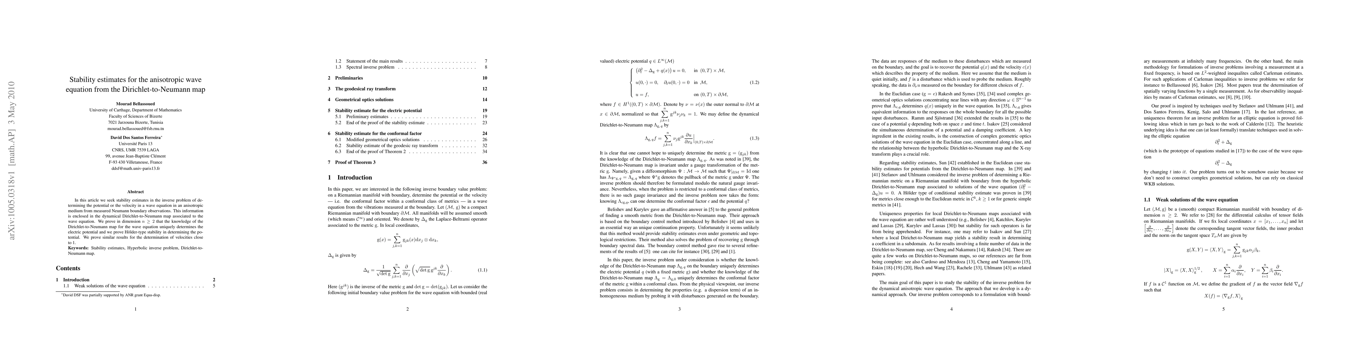 This paper establishes stability estimates for the anisotropic wave equation by analyzing the Dirichlet-to-Neumann map. It proves that the electric potential in the wave equation can be uniquely determined from Neumann boundary observations, along with H\"older-type stability estimates.