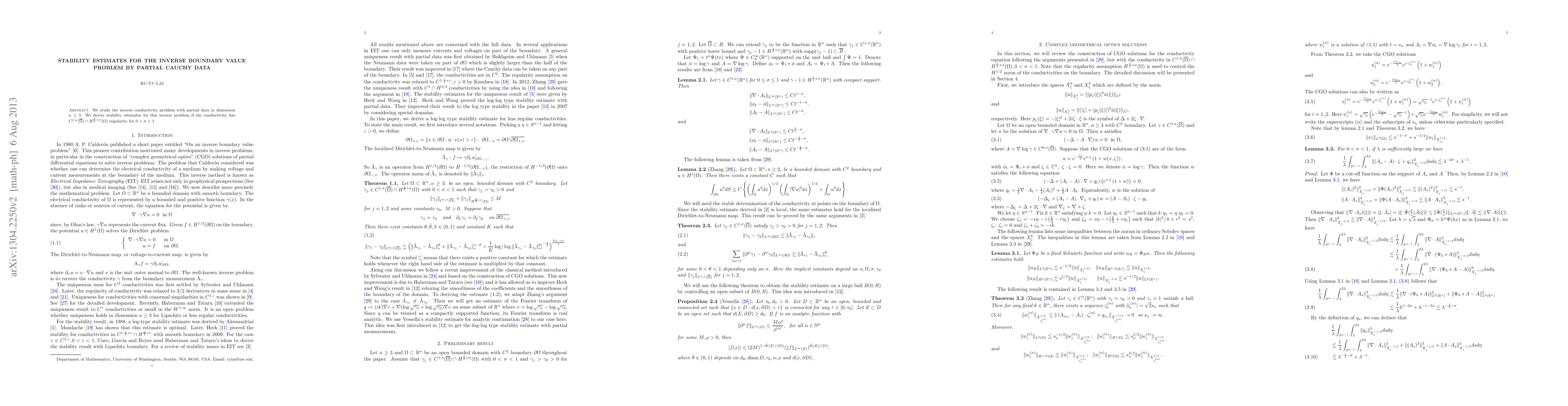This paper investigates the inverse conductivity problem using partial Cauchy data in dimensions $n\geq 3$. It establishes stability estimates under the assumption that the conductivity is of $C^{1,\sigma}(\bar\Omega)\cap H^{3/2+\sigma}(\Omega)$ regularity for $0<\sigma<1$.