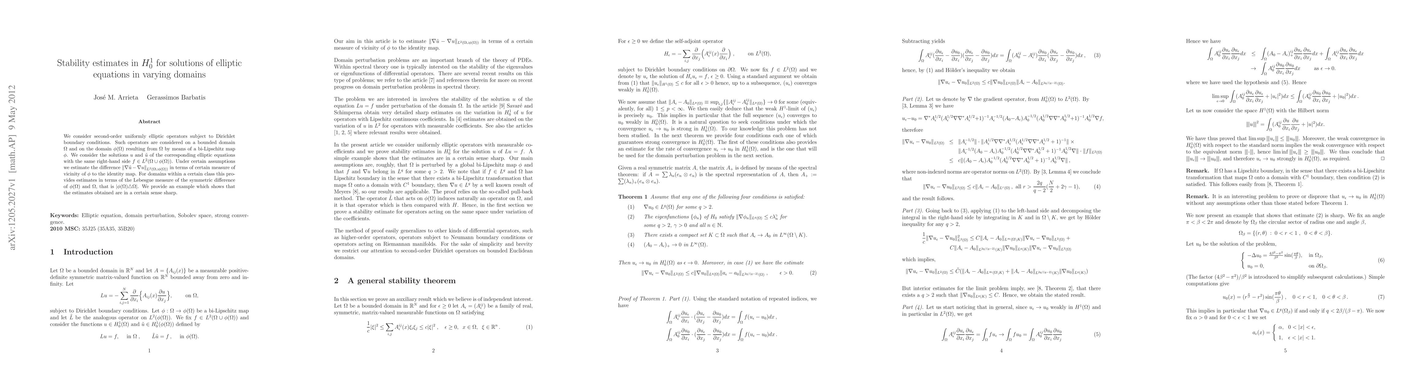 This paper estimates stability of solutions to elliptic equations in varying domains, providing a measure of how much the solution changes when the domain is transformed using a bi-Lipschitz map.