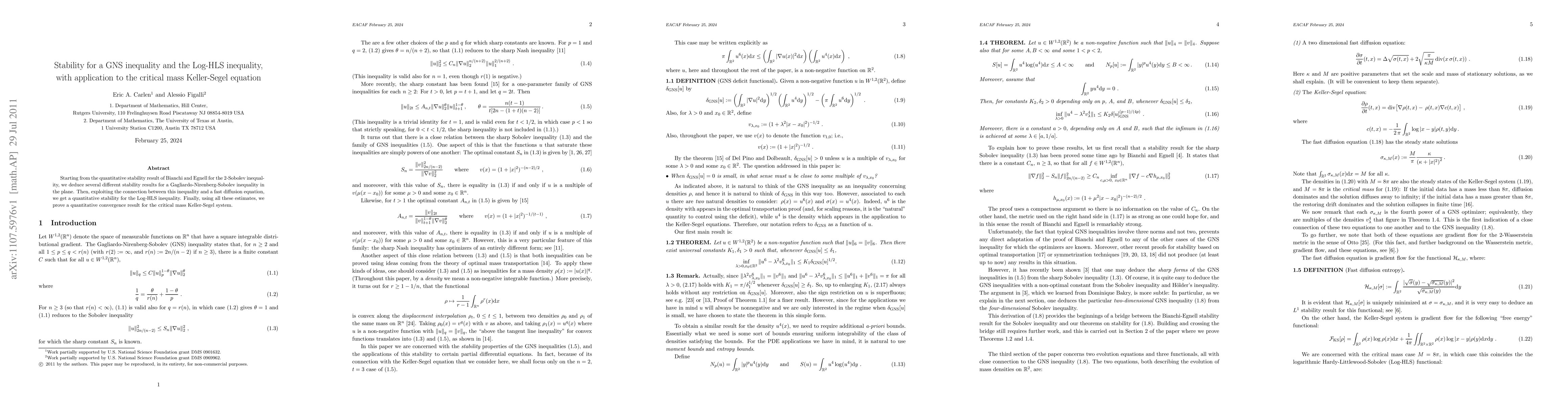 This paper derives stability results for the Gagliardo-Nirenberg-Sobolev inequality and the Log-HLS inequality, leveraging the quantitative stability of the 2-Sobolev inequality. It then applies these estimates to establish a quantitative convergence result for the critical mass Keller-Segel equation.