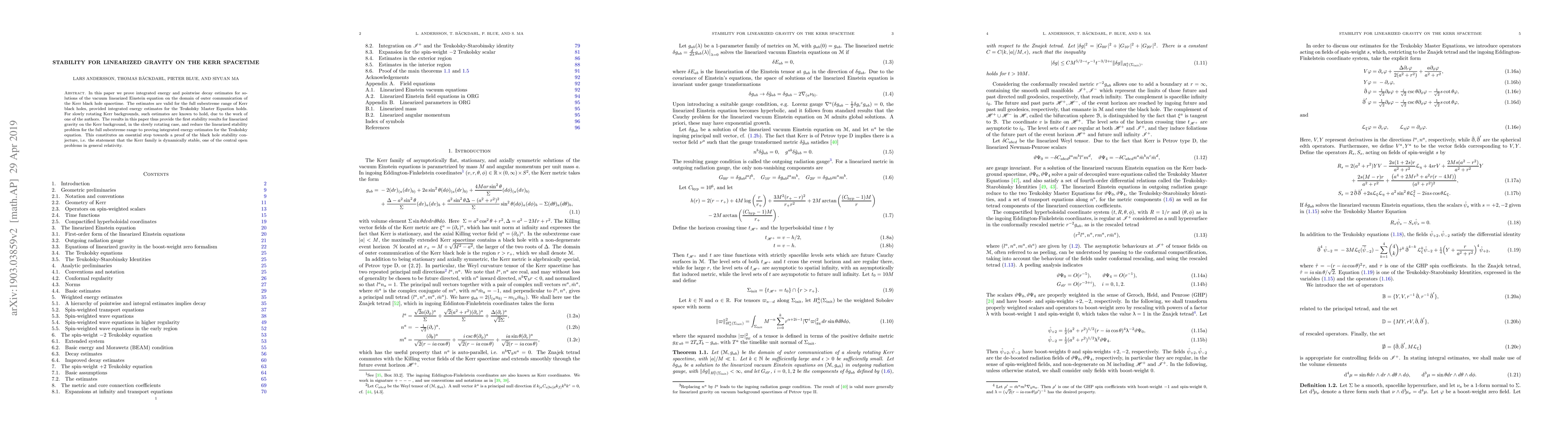 This paper establishes integrated energy and pointwise decay estimates for solutions of the linearized Einstein equation on the Kerr black hole's outer communication domain, providing the first stability results for linearized gravity in the slowly rotating Kerr case. This work reduces the linearized stability problem to proving integrated energy estimates for the Teukolsky equation, thus advancing the black hole stability conjecture.