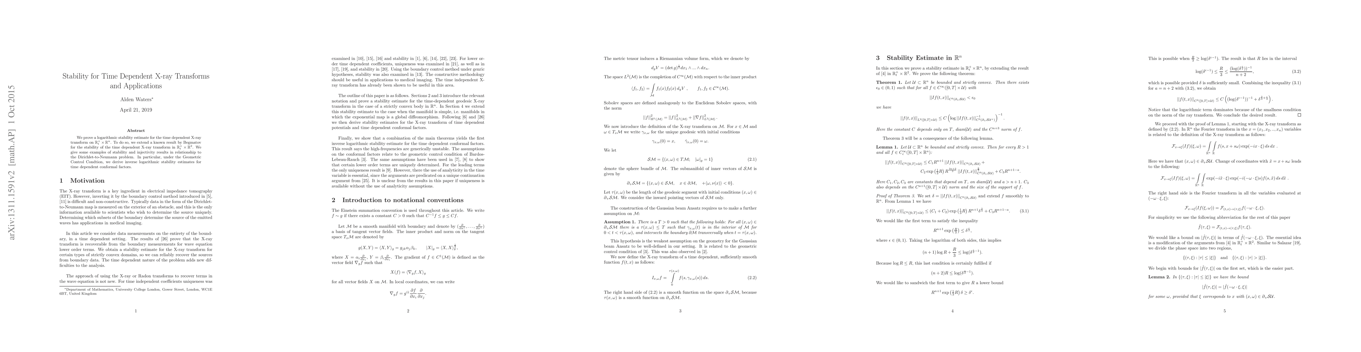 This paper proves a logarithmic stability estimate for time-dependent X-ray transforms, extending a known result to higher dimensions, with implications for inverse problems and the Dirichlet-to-Neumann problem.