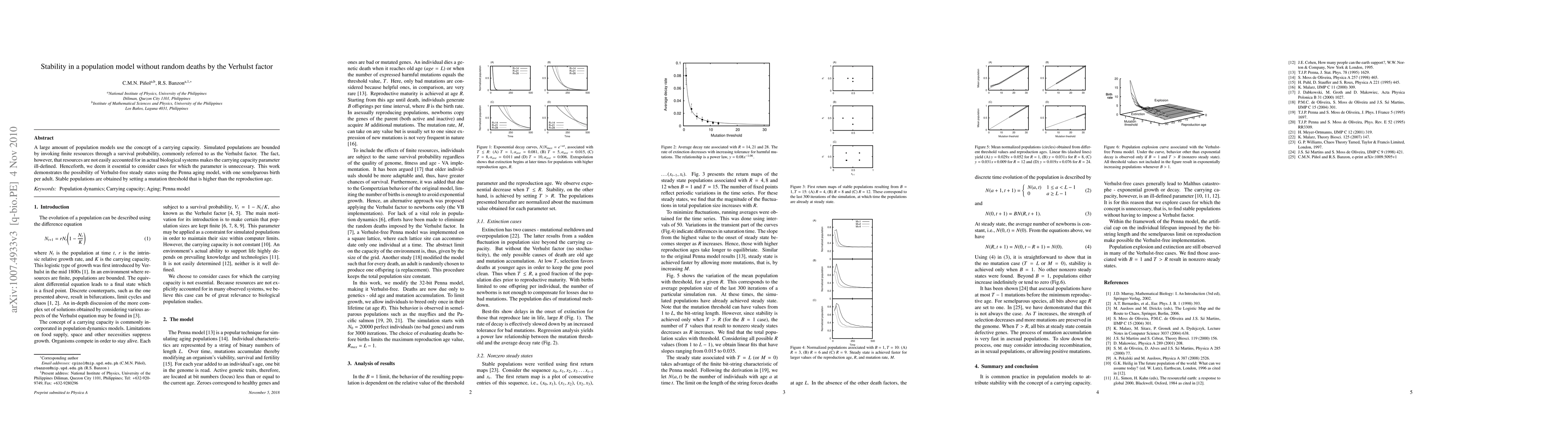 A large amount of population models use the concept of a carrying capacity. Simulated populations are bounded by invoking finite resources through a survival probability, commonly referred to as the Verhulst factor. The fact, however, that resources are not easily accounted for in actual biological systems makes the carrying capacity parameter ill-defined. Henceforth, we deem it essential to consider cases for which the parameter is unnecessary. This work demonstrates the possibility of Verhulst-free steady states using the Penna aging model, with one semelparous birth per adult. Stable populations are obtained by setting a mutation threshold that is higher than the reproduction age.