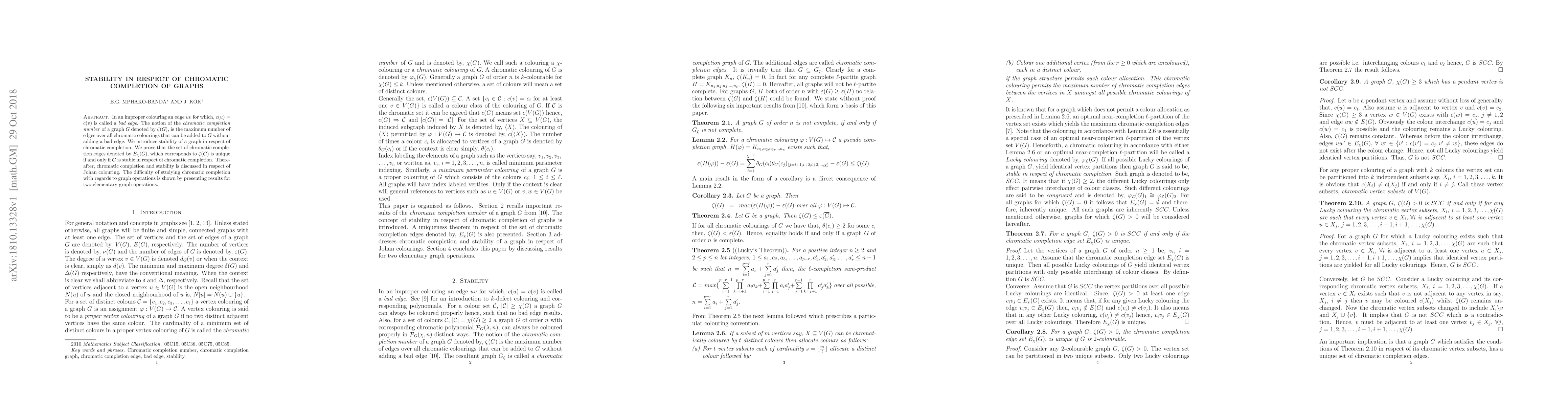 This paper explores the concept of chromatic completion number in graph theory, defining it as the maximum number of edges that can be added without creating a bad edge. It introduces the stability of graphs concerning chromatic completion and proves that the set of chromatic completion edges is unique if and only if the graph is stable in this context.