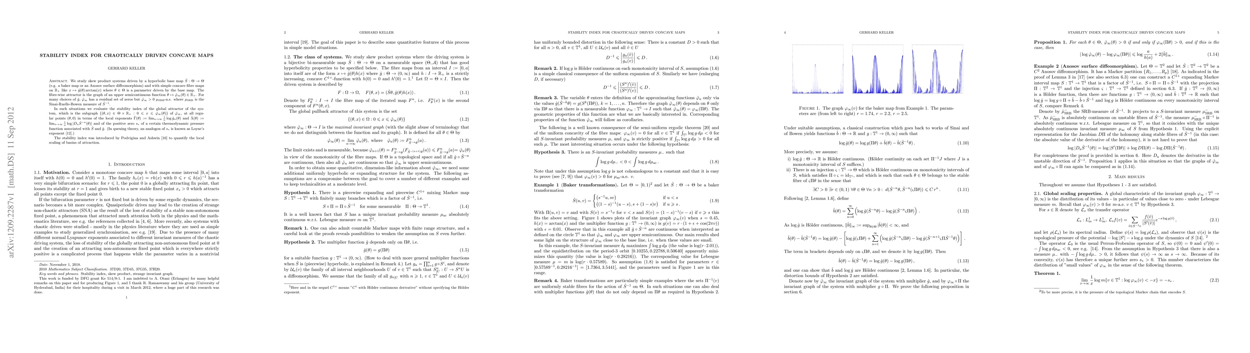 This paper investigates the stability index of chaotically driven skew product systems with hyperbolic base maps and concave fibre maps. It evaluates the stability index of the global attractor in terms of local exponents and a thermodynamic pressure function, providing insights into the local scaling of basins of attraction.