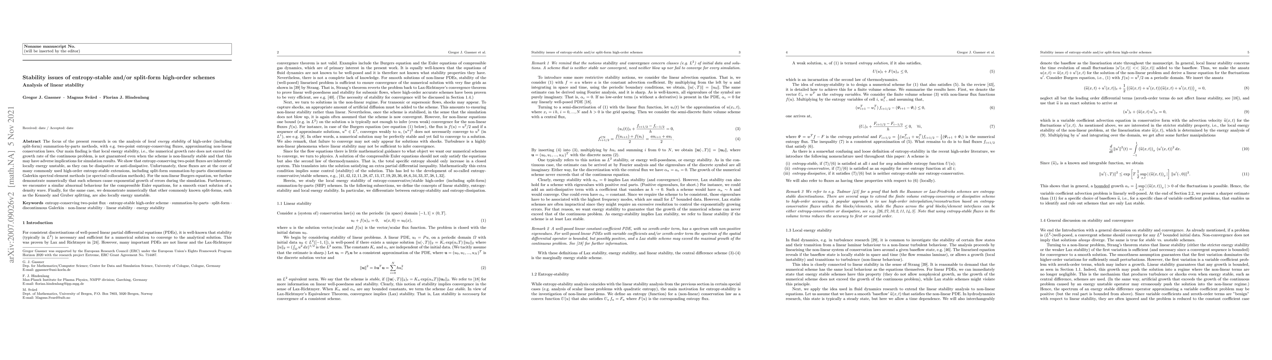 High-order schemes for simulating conservation laws can exhibit local energy instability, leading to exponential growth of errors, even when non-linearly stable.