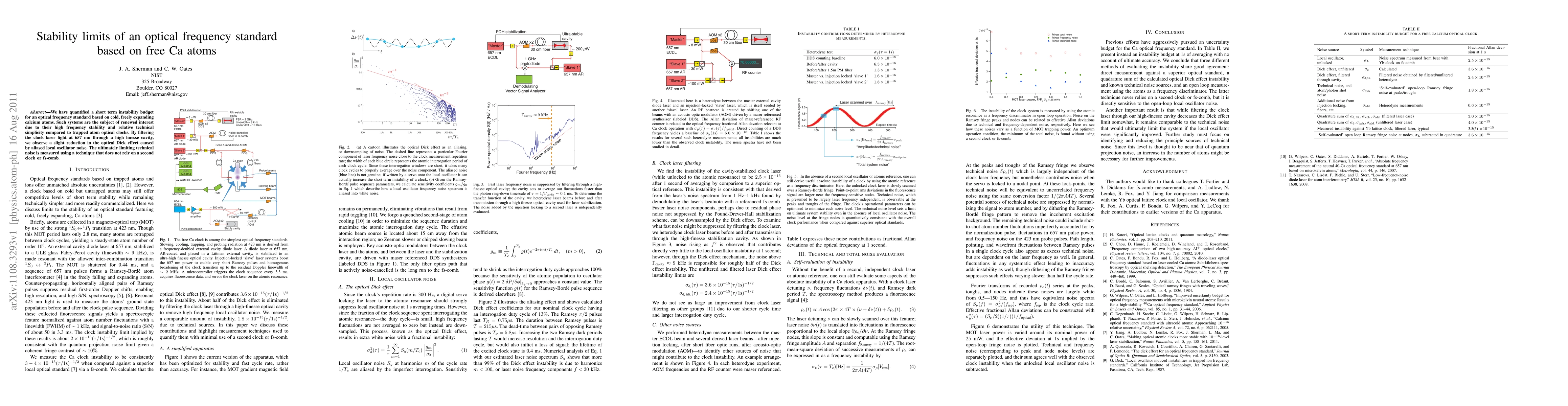 This paper quantifies the short-term instability of an optical frequency standard using free calcium atoms, noting a reduction in the optical Dick effect through a high finesse cavity. The study identifies the ultimate technical noise limit without relying on a second clock or femtosecond comb.