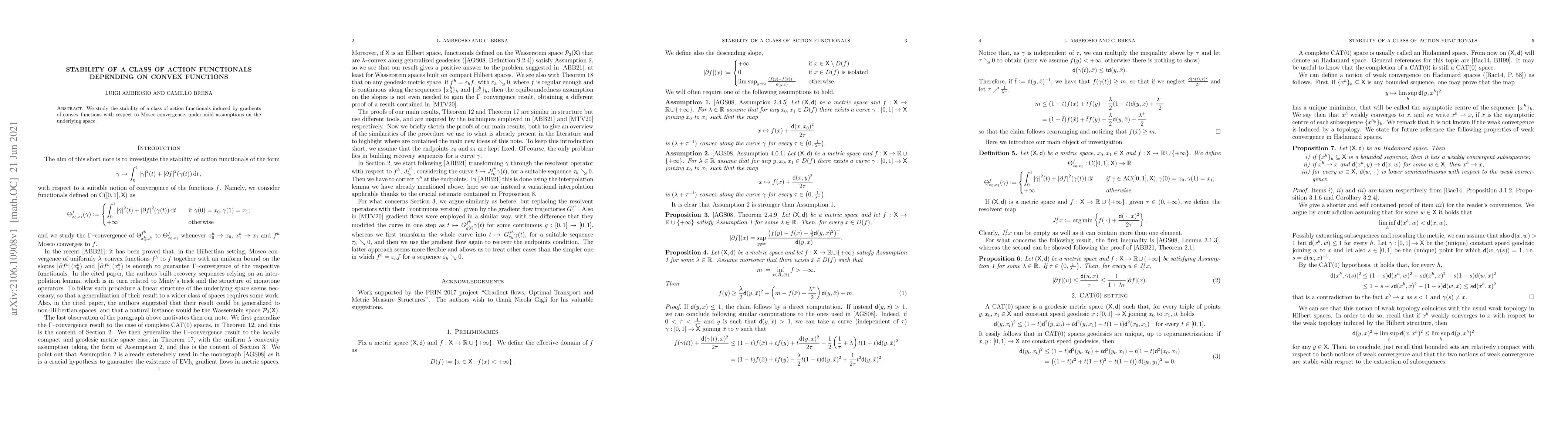 We study the stability of a class of action functionals induced by gradients of convex functions with respect to Mosco convergence, under mild assumptions on the underlying space.