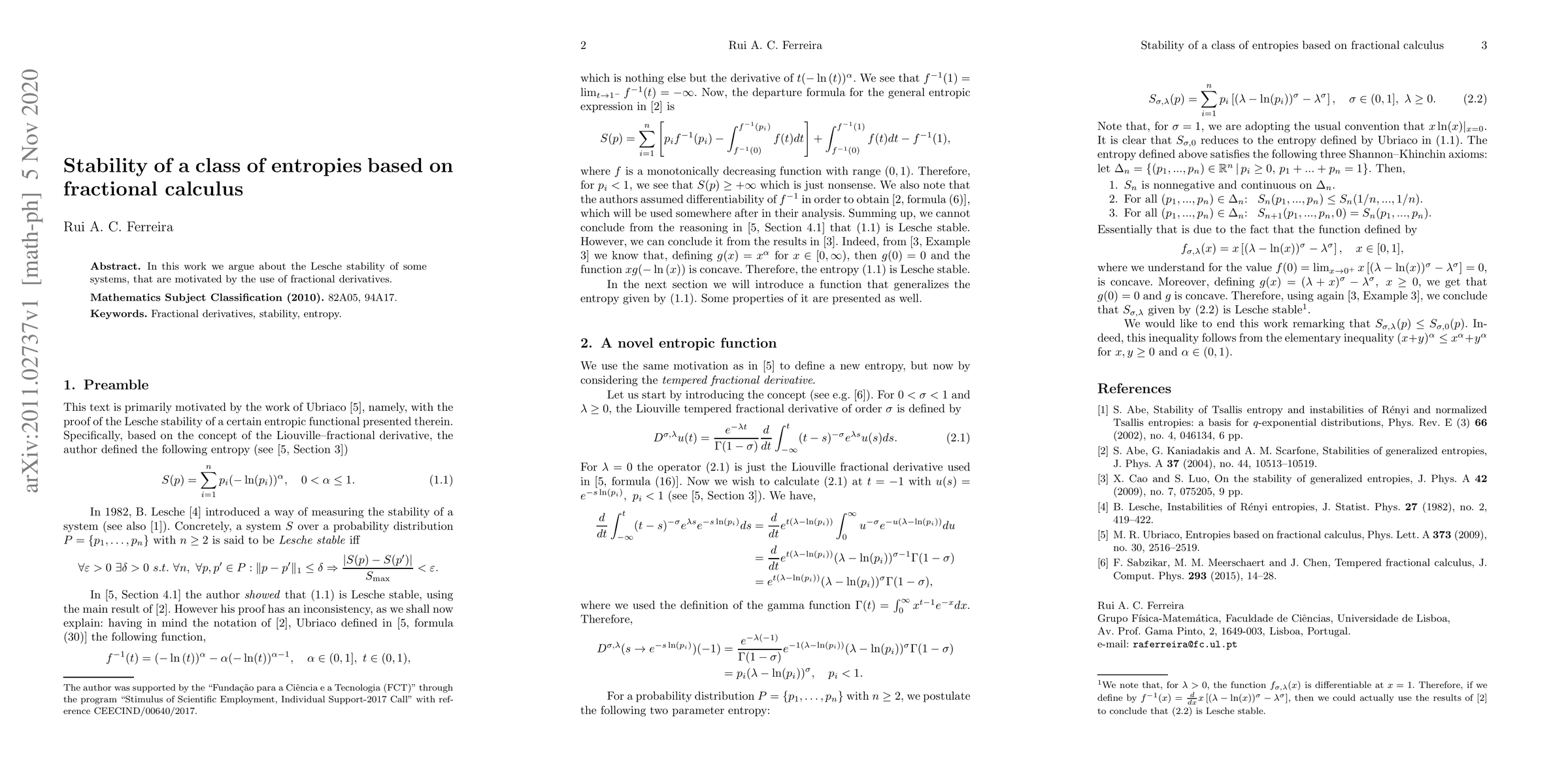 In this work we argue about the Lesche stability of some systems, that are motivated by the use of fractional derivatives.
