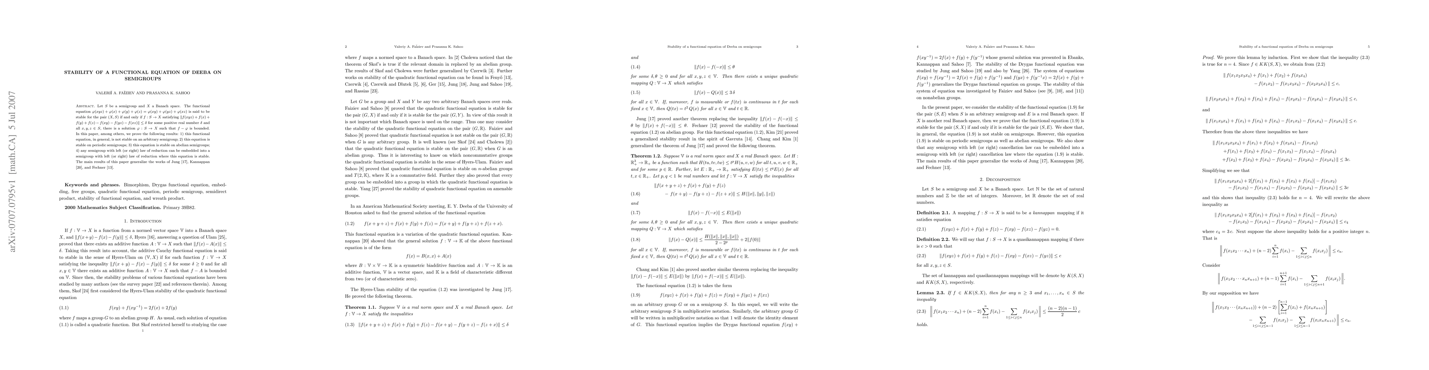 This paper investigates the stability of a functional equation on semigroups, proving that the equation is not generally stable on arbitrary semigroups but is stable on periodic and abelian semigroups. It also shows that semigroups with specific reduction laws can be embedded into stable ones.