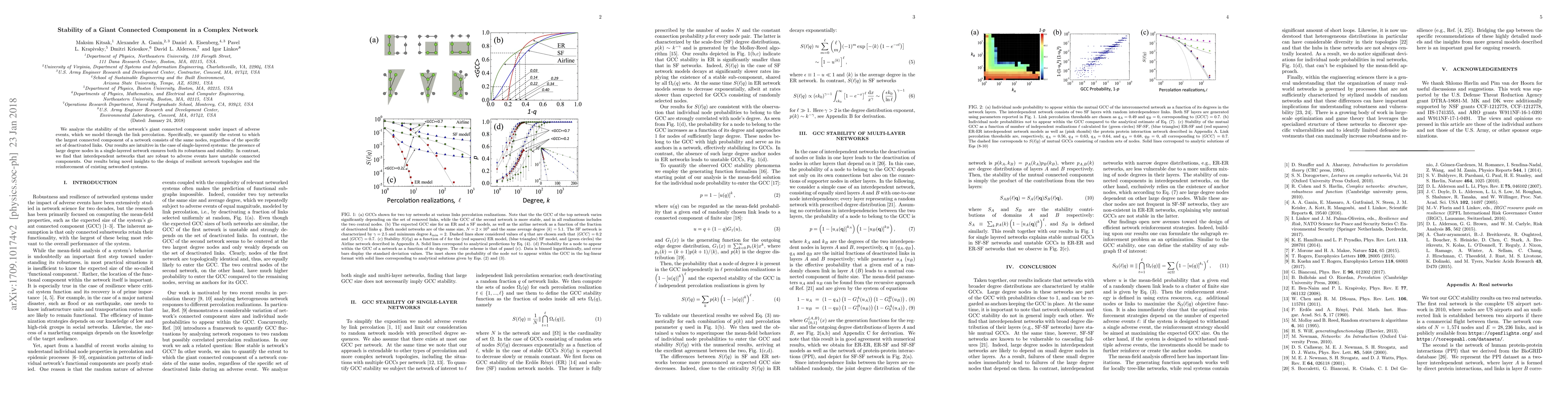 We analyze the stability of the network's giant connected component under impact of adverse events, which we model through the link percolation. Specifically, we quantify the extent to which the largest connected component of a network consists of the same nodes, regardless of the specific set of deactivated links. Our results are intuitive in the case of single-layered systems: the presence of large degree nodes in a single-layered network ensures both its robustness and stability. In contrast, we find that interdependent networks that are robust to adverse events have unstable connected components. Our results bring novel insights to the design of resilient network topologies and the reinforcement of existing networked systems.