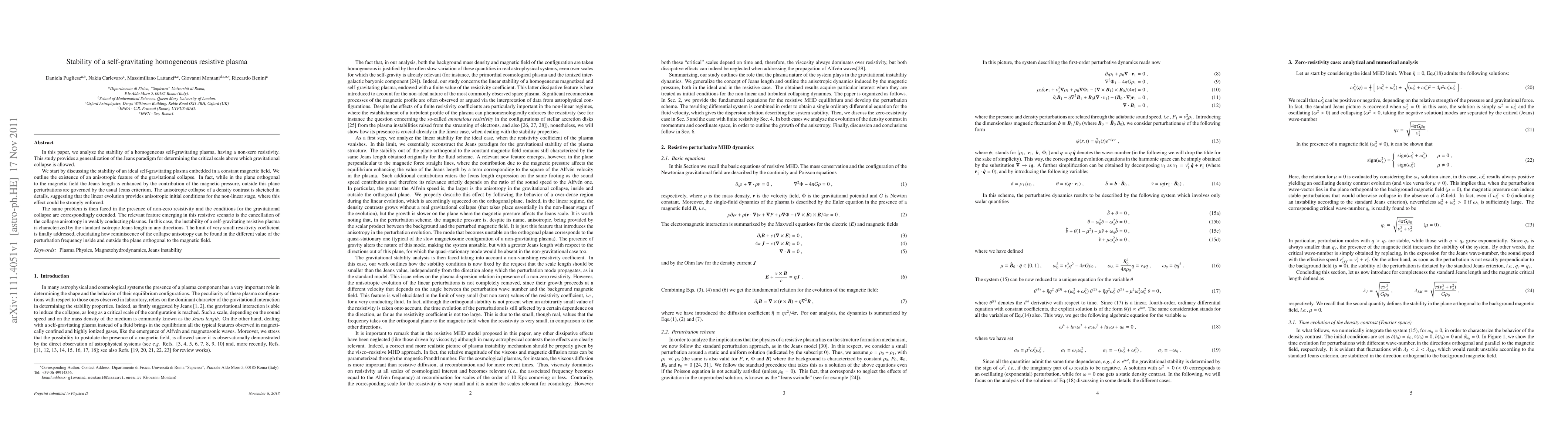 This paper investigates the stability of a homogeneous self-gravitating plasma with non-zero resistivity, extending the Jeans paradigm to include magnetic fields and resistivity. It finds that resistivity cancels out anisotropy in weakly conducting plasmas, leading to isotropic gravitational collapse.