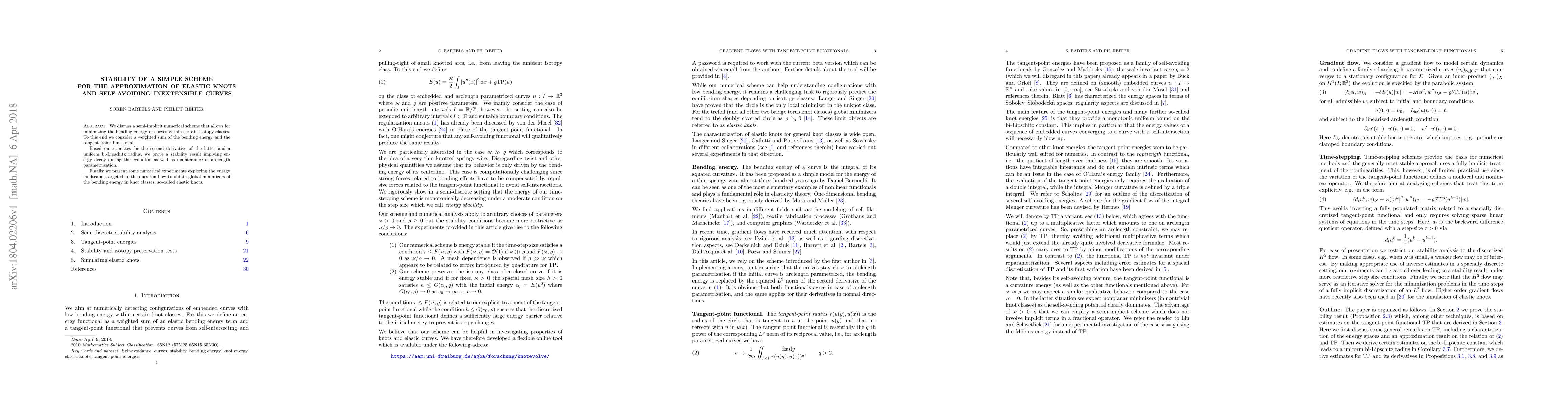 We discuss a semi-implicit numerical scheme that allows for minimizing the bending energy of curves within certain isotopy classes. To this end we consider a weighted sum of the bending energy and the tangent-point functional. Based on estimates for the second derivative of the latter and a uniform bi-Lipschitz radius, we prove a stability result implying energy decay during the evolution as well as maintenance of arclength parametrization. Finally we present some numerical experiments exploring the energy landscape, targeted to the question how to obtain global minimizers of the bending energy in knot classes, so-called elastic knots.