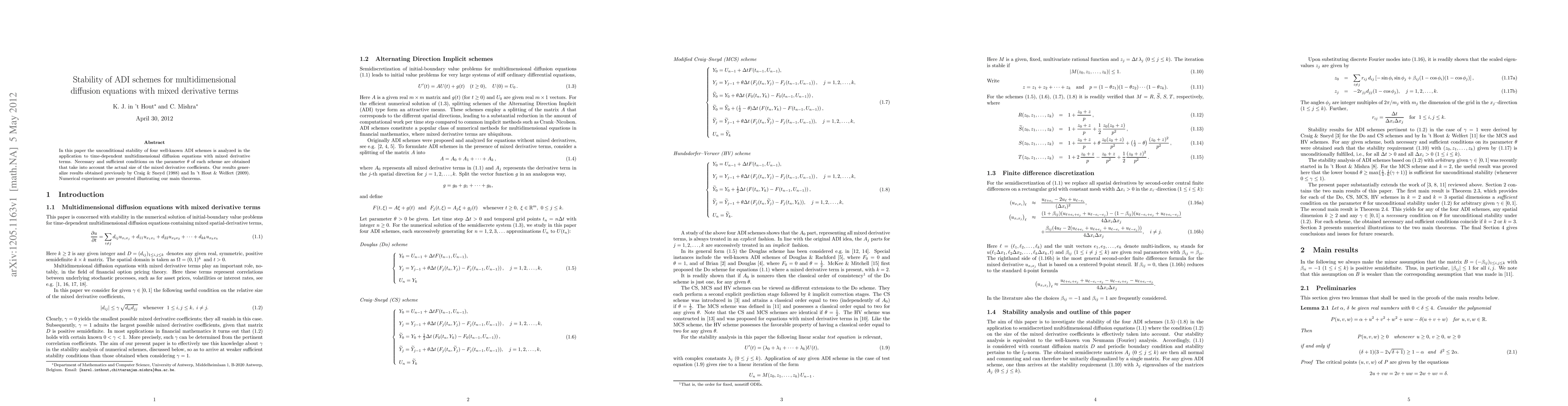 This paper analyzes the unconditional stability of four ADI schemes for multidimensional diffusion equations with mixed derivative terms, deriving necessary and sufficient conditions based on the parameter theta that generalize previous results. Numerical experiments support the main theorems.