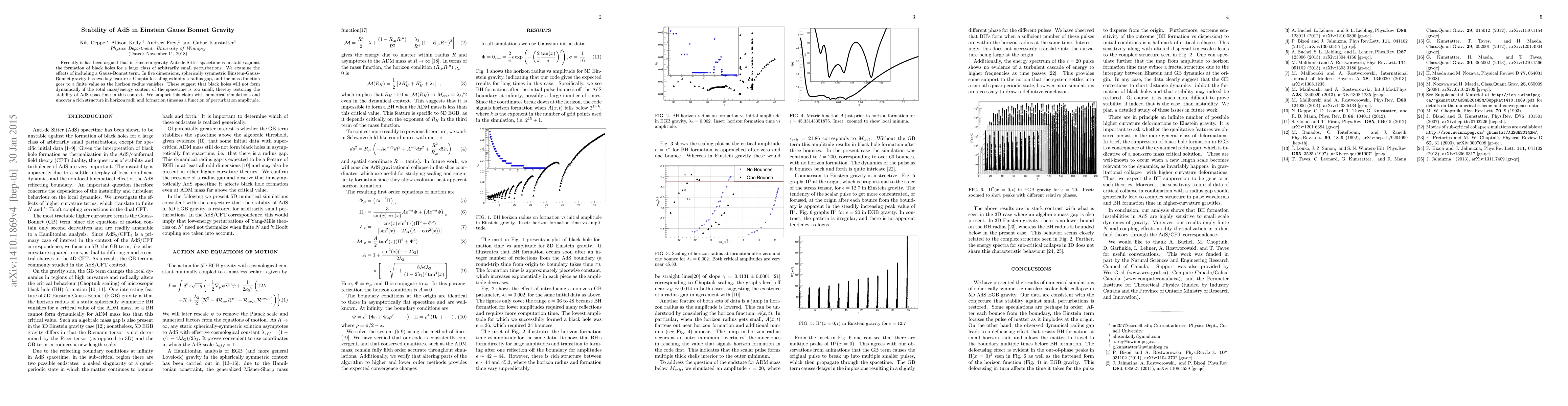 Recently it has been argued that in Einstein gravity Anti-de Sitter spacetime is unstable against the formation of black holes for a large class of arbitrarily small perturbations. We examine the effects of including a Gauss-Bonnet term. In five dimensions, spherically symmetric Einstein-Gauss-Bonnet gravity has two key features: Choptuik scaling exhibits a radius gap, and the mass function goes to a finite value as the horizon radius vanishes. These suggest that black holes will not form dynamically if the total mass/energy content of the spacetime is too small, thereby restoring the stability of AdS spacetime in this context. We support this claim with numerical simulations and uncover a rich structure in horizon radii and formation times as a function of perturbation amplitude.