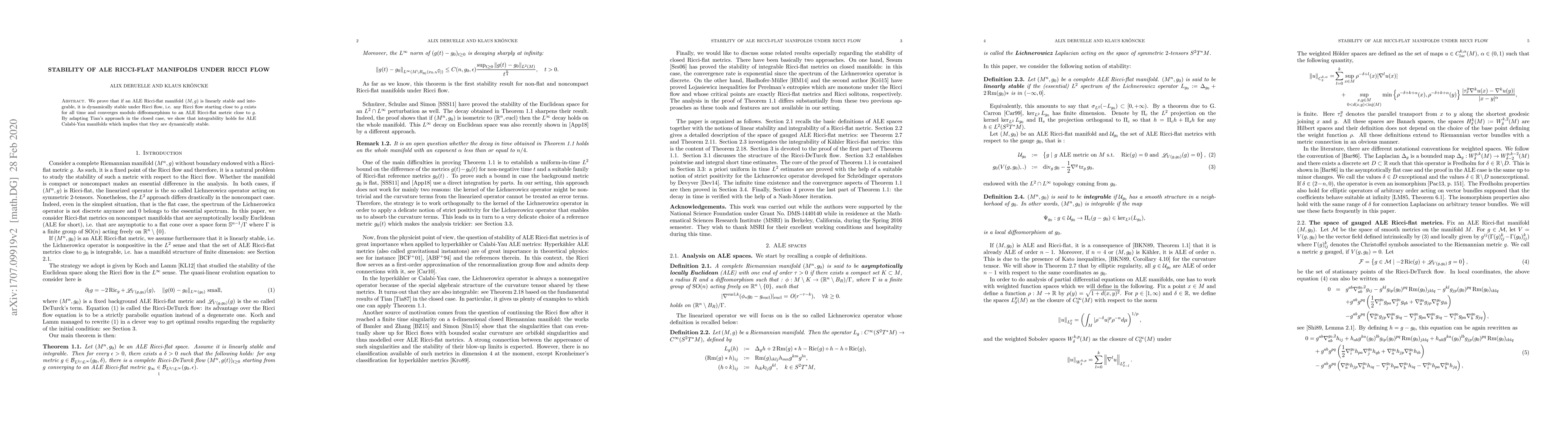Summary: This paper demonstrates that linearly stable and integrable ALE Ricci-flat manifolds remain dynamically stable under Ricci flow, converging to nearby ALE Ricci-flat metrics. It extends Tian's method to show integrability and dynamic stability for ALE Calabi-Yau manifolds.