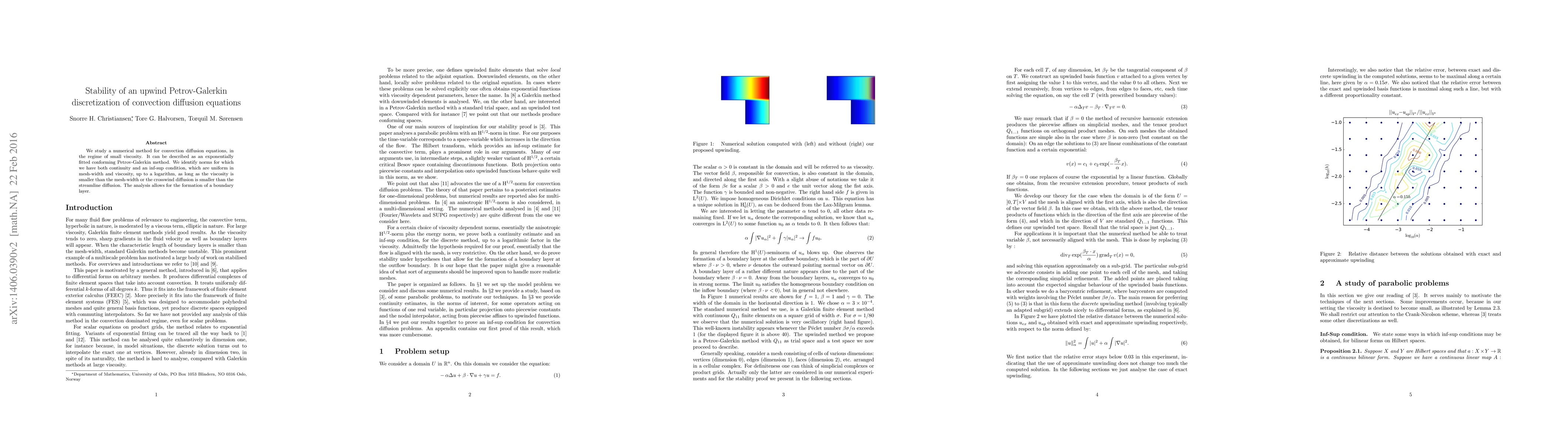 This paper investigates an upwind Petrov-Galerkin discretization method for convection-diffusion equations with small viscosity, demonstrating uniform continuity and inf-sup condition in specific norms, even in the presence of boundary layers. The method's stability is maintained under conditions where viscosity is smaller than the mesh width.