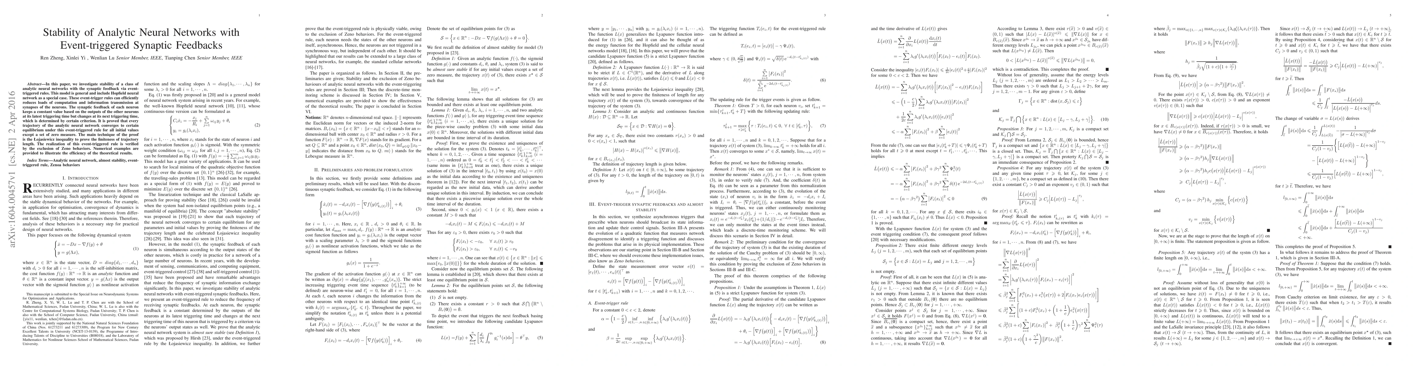 In this paper, we investigate stability of a class of analytic neural networks with the synaptic feedback via event-triggered rules. This model is general and include Hopfield neural network as a special case. These event-trigger rules can efficiently reduces loads of computation and information transmission at synapses of the neurons. The synaptic feedback of each neuron keeps a constant value based on the outputs of the other neurons at its latest triggering time but changes at its next triggering time, which is determined by certain criterion. It is proved that every trajectory of the analytic neural network converges to certain equilibrium under this event-triggered rule for all initial values except a set of zero measure. The main technique of the proof is the Lojasiewicz inequality to prove the finiteness of trajectory length. The realization of this event-triggered rule is verified by the exclusion of Zeno behaviors. Numerical examples are provided to illustrate the efficiency of the theoretical results.