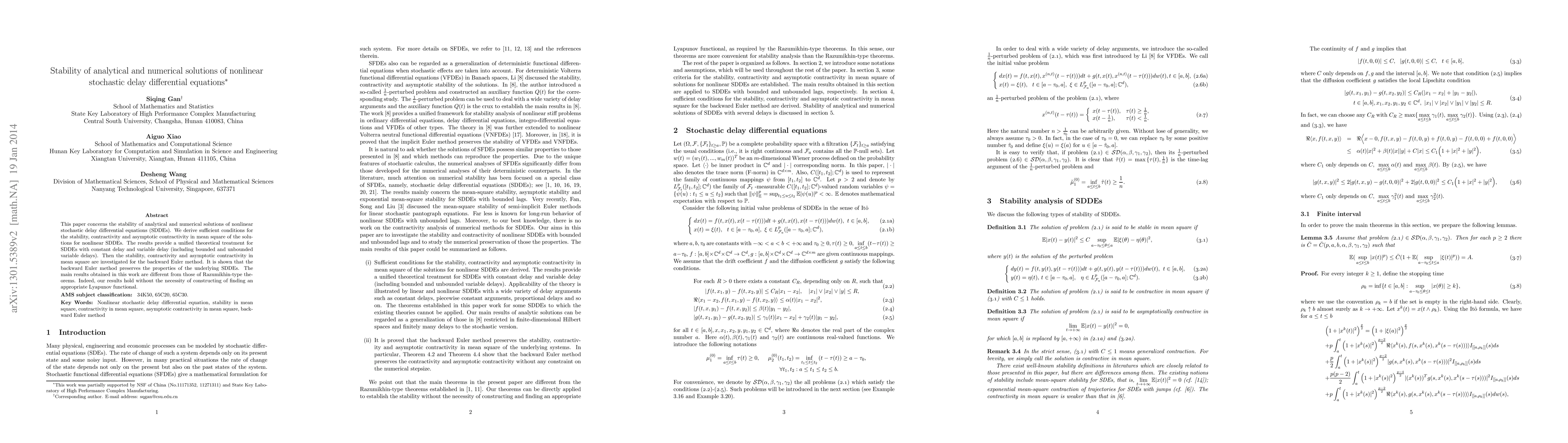 This paper derives sufficient conditions for stability, contractivity, and asymptotic contractivity in mean square of nonlinear stochastic delay differential equations (SDDEs), providing a unified treatment for both constant and variable delays. The backward Euler method is shown to preserve these properties, differing from Razumikhin-type theorems by not requiring a Lyapunov functional.