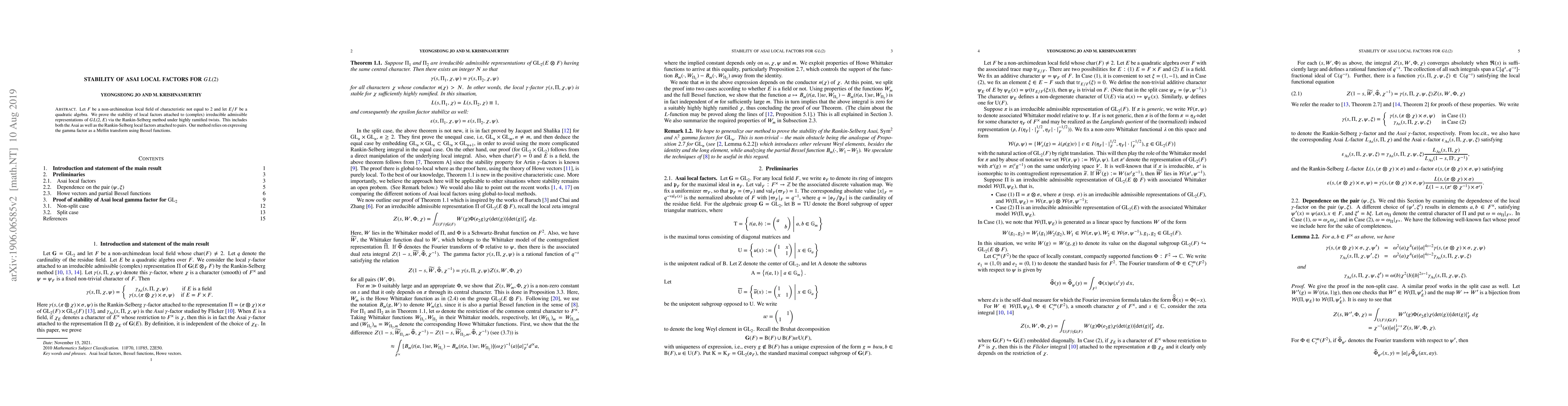 This paper proves the stability of Asai local factors for $GL(2)$ under highly ramified twists through the Rankin-Selberg method, employing a Mellin transform approach with Bessel functions for the gamma factor.
