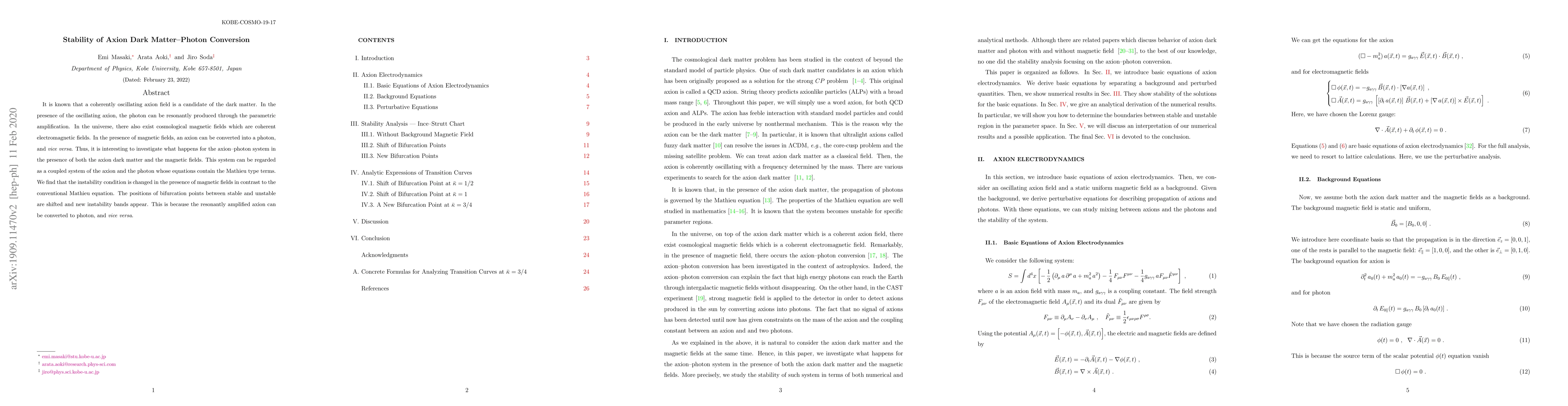 This paper investigates the stability of axion dark matter-photon conversion in the presence of cosmological magnetic fields, finding that magnetic fields shift bifurcation points and introduce new instability bands due to the resonant conversion between axions and photons.