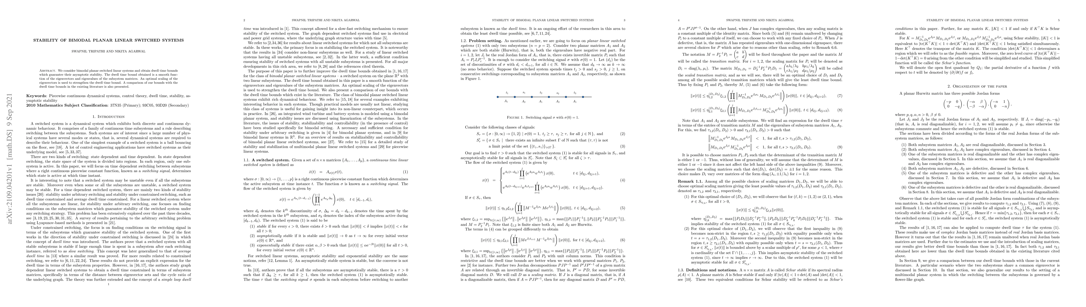 Researchers have developed a method to guarantee the asymptotic stability of bimodal planar linear switched systems by finding optimal dwell time bounds based on subsystem matrices' eigenvectors and eigenvalues.