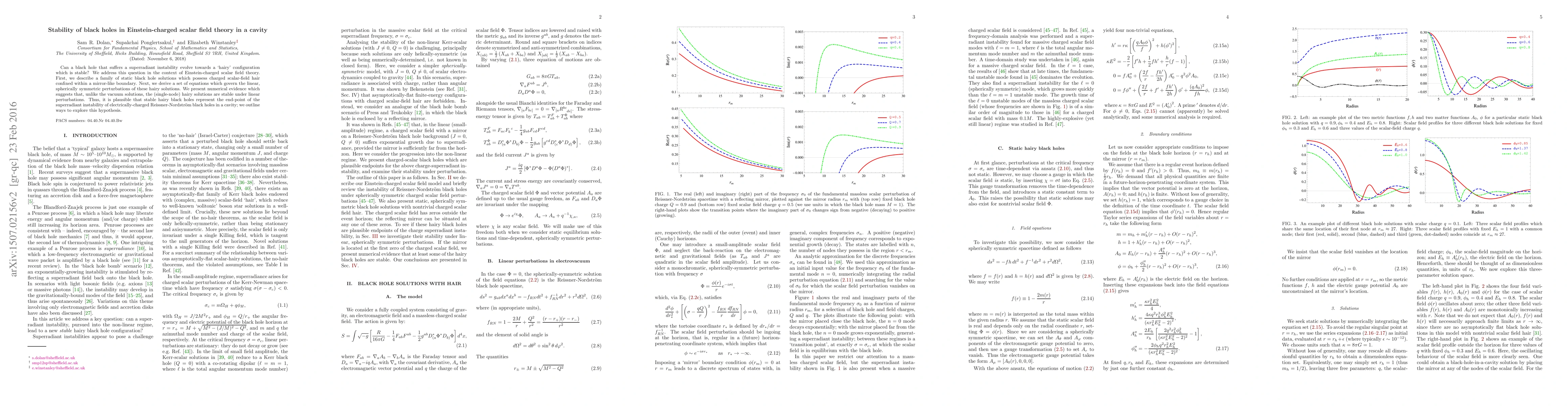 This paper investigates whether black holes undergoing superradiant instability can evolve into stable 'hairy' configurations in Einstein-charged scalar field theory within a cavity. It finds numerical evidence suggesting that these hairy solutions, unlike vacuum solutions, are stable under linear perturbations, indicating a potential end-state for the instability of electrically-charged Reissner-Nordstrom black holes.