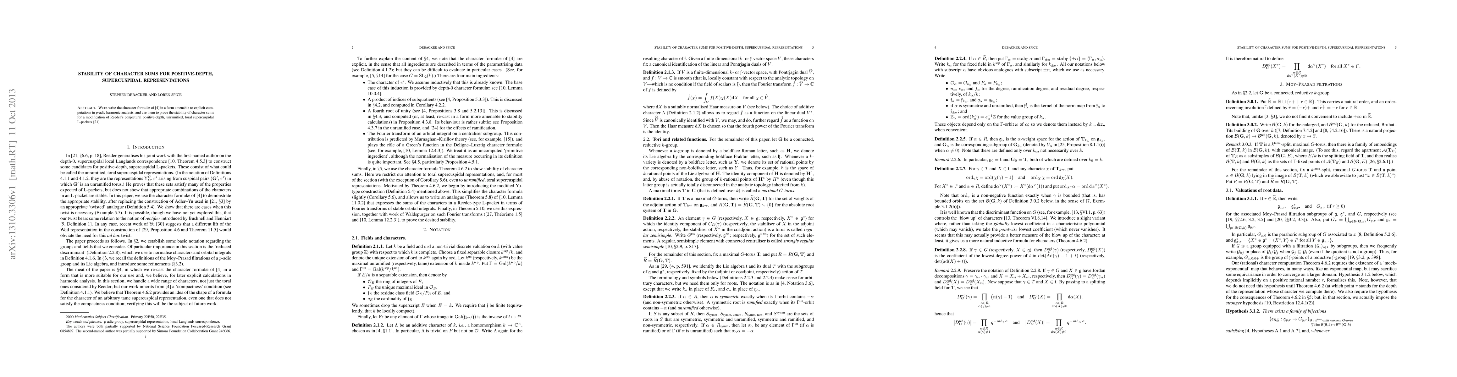 This paper reformulates character formulae for supercuspidal representations to facilitate $p$-adic harmonic analysis computations, and leverages these new forms to establish the stability of character sums for modified Reeder conjectured positive-depth, unramified toral supercuspidal L-packets.