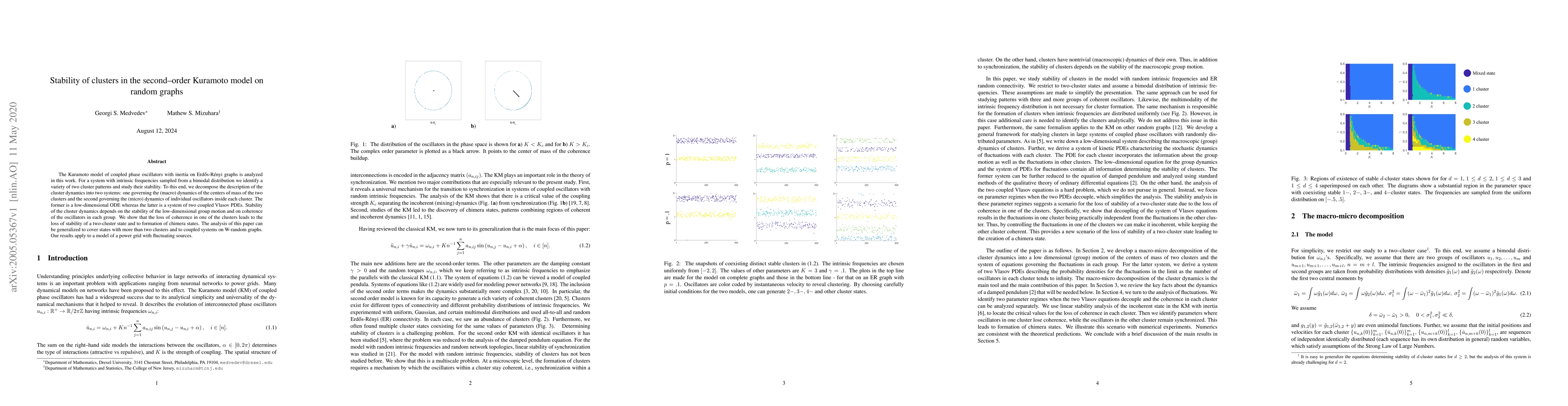 Researchers analyzed the stability of clusters in a model of coupled phase oscillators on random graphs, finding that loss of coherence within one cluster can lead to instability and the formation of chimera states.