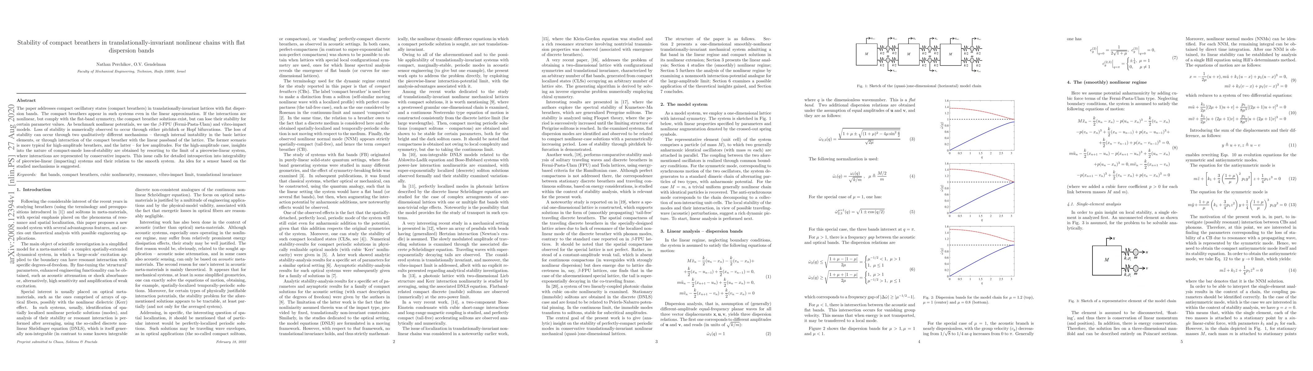 Research investigates stability of compact oscillatory states in nonlinear chains with flat dispersion bands, finding that nonlinearity can lead to loss of stability through internal instability or interaction with the lattice passband.
