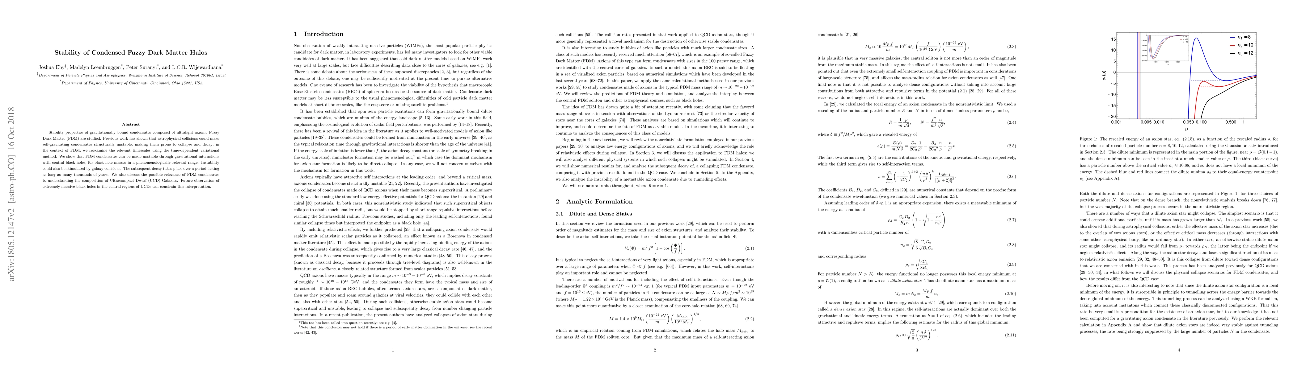 Stability properties of gravitationally bound condensates composed of ultralight axionic Fuzzy Dark Matter (FDM) are studied. Previous work has shown that astrophysical collisions could make self-gravitating condensates structurally unstable, making them prone to collapse and decay; in the context of FDM, we reexamine the relevant timescales using the time-dependent variational method. We show that FDM condensates can be made unstable through gravitational interactions with central black holes, for black hole masses in a phenomenologically relevant range. Instability could also be stimulated by galaxy collisions. The subsequent decay takes place over a period lasting as long as many thousands of years. We also discuss the possible relevance of FDM condensates to understanding the composition of Ultracompact Dwarf (UCD) Galaxies. Future observation of extremely massive black holes in the central regions of UCDs can constrain this interpretation.