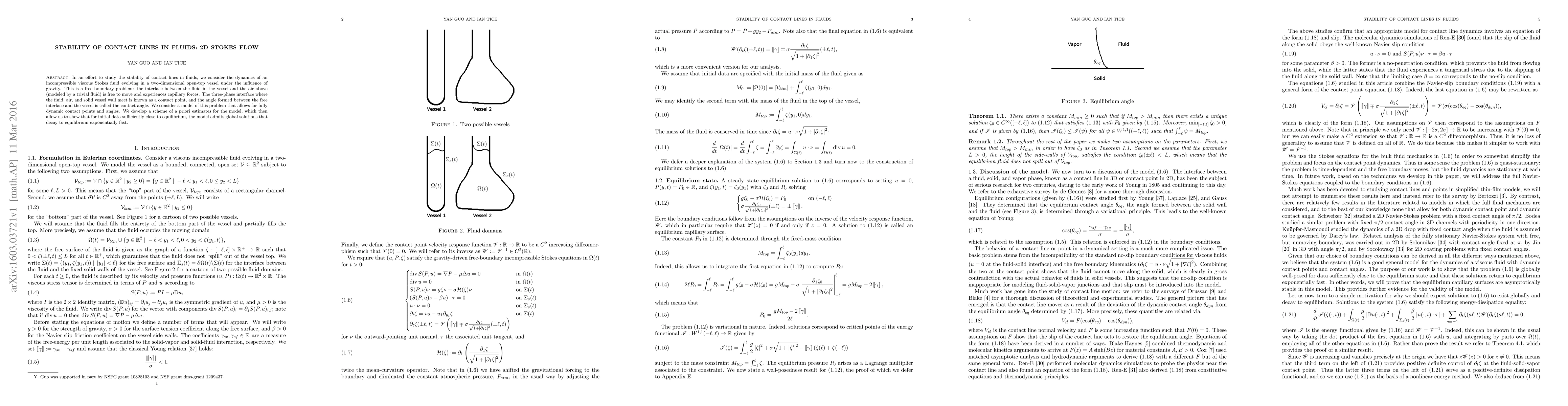 In an effort to study the stability of contact lines in fluids, we consider the dynamics of an incompressible viscous Stokes fluid evolving in a two-dimensional open-top vessel under the influence of gravity. This is a free boundary problem: the interface between the fluid in the vessel and the air above (modeled by a trivial fluid) is free to move and experiences capillary forces. The three-phase interface where the fluid, air, and solid vessel wall meet is known as a contact point, and the angle formed between the free interface and the vessel is called the contact angle. We consider a model of this problem that allows for fully dynamic contact points and angles. We develop a scheme of a priori estimates for the model, which then allow us to show that for initial data sufficiently close to equilibrium, the model admits global solutions that decay to equilibrium exponentially fast.