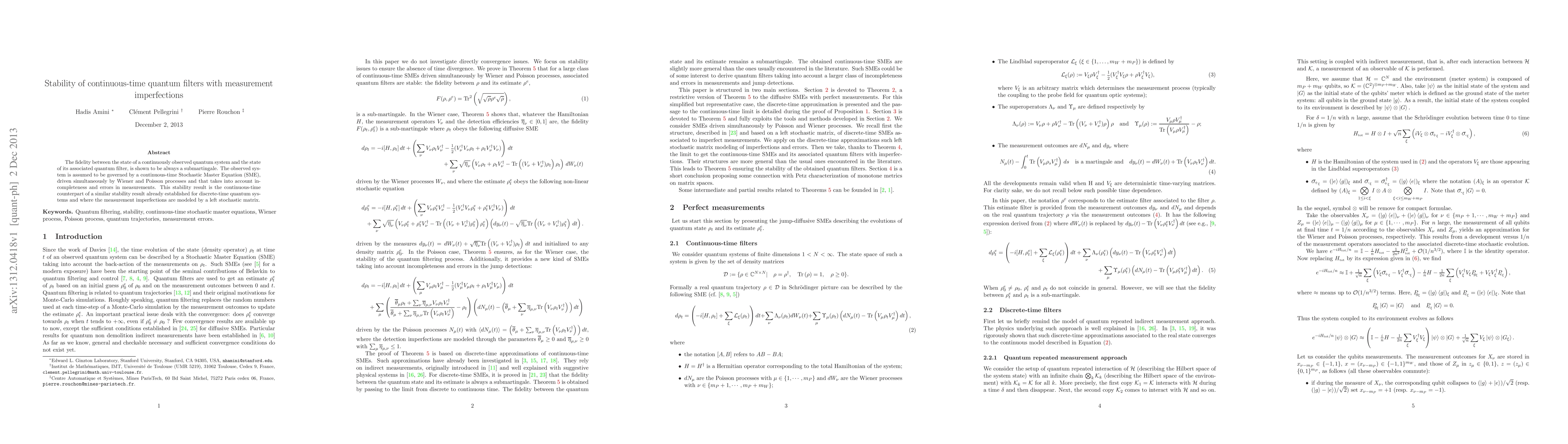 This paper demonstrates that the fidelity between a continuously observed quantum system and its associated quantum filter remains a submartingale, even with measurement imperfections. The system is modeled by a continuous-time Stochastic Master Equation considering both Wiener and Poisson processes, highlighting the stability of quantum filters in the presence of incomplete and erroneous measurements.