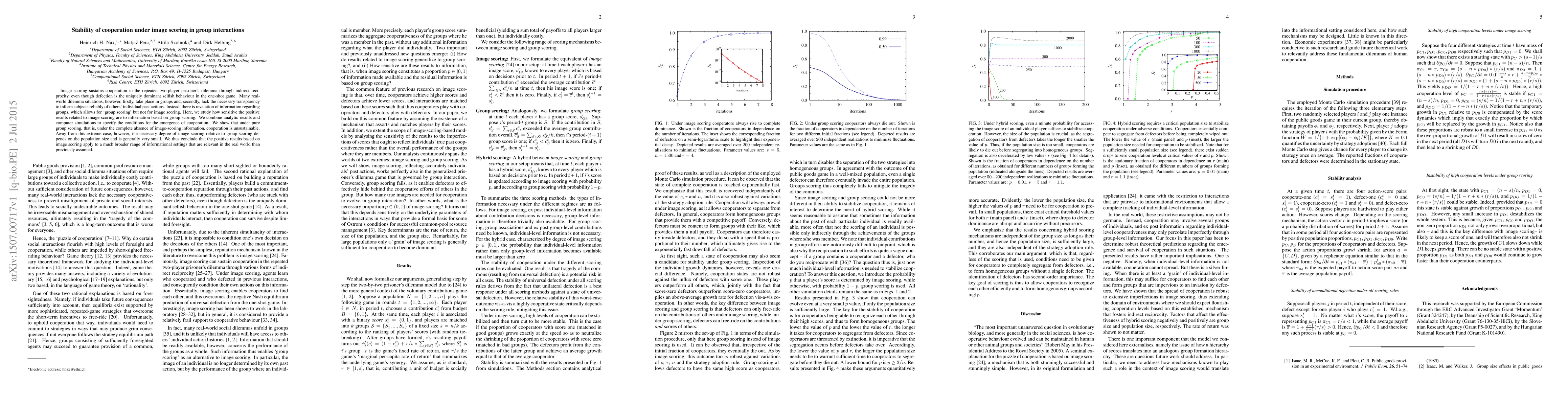 Image scoring sustains cooperation in the repeated two-player prisoner's dilemma through indirect reciprocity, even though defection is the uniquely dominant selfish behaviour in the one-shot game. Many real-world dilemma situations, however, firstly, take place in groups and, secondly, lack the necessary transparency to inform subjects reliably of others' individual past actions. Instead, there is revelation of information regarding groups, which allows for `group scoring' but not for image scoring. Here, we study how sensitive the positive results related to image scoring are to information based on group scoring. We combine analytic results and computer simulations to specify the conditions for the emergence of cooperation. We show that under pure group scoring, that is, under the complete absence of image-scoring information, cooperation is unsustainable. Away from this extreme case, however, the necessary degree of image scoring relative to group scoring depends on the population size and is generally very small. We thus conclude that the positive results based on image scoring apply to a much broader range of informational settings that are relevant in the real world than previously assumed.